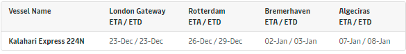 In addition, the Cap San Lorenzo (245N/249S) voyage is unable to dock in Rotterdam and contingency plans are being developed to minimize disruption to customer supply chains.