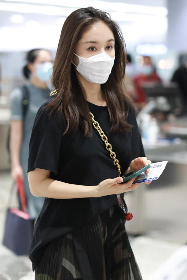 In this aspect, Wang Ziwen’s “pure black” outfit is quite good, and it can be said that the demonstration is very correct. The “black” way of dressing. A look like this T-shirt paired with a tulle printed skirt does not feel dull at all, but is instead very energetic and youthful. Especially the tulle printed pleated skirt matched with the lower body can also add a bit of youthful girlishness to the look. The pattern design also adds a sense of layering, making the look more three-dimensional.