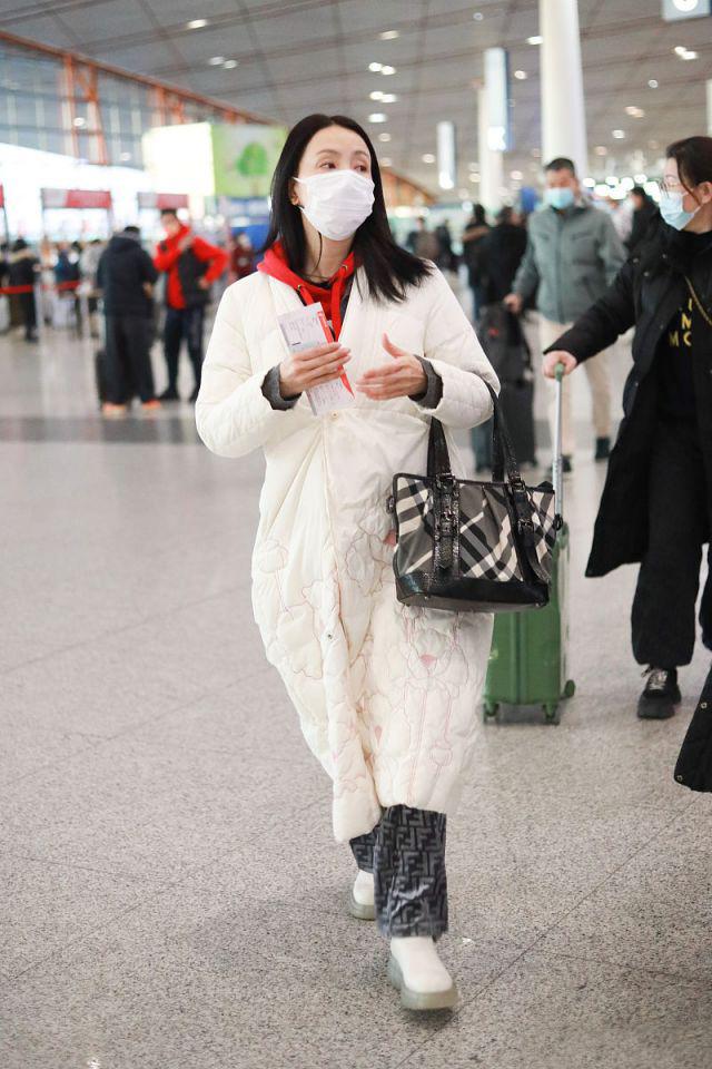 Cotton jackets, like down jackets, are also very popular items in winter wear. Although the thermal insulation effect is not as good as that of down jackets, the rich styles and design styles make it easier for women to perfect their image and show their personal charm. Therefore, when Tao Hong walked to the airport, she decisively chose the style of cotton-padded clothes, and she perfectly improved her image through matching, which also made her friends feel the fashionable charm of “cotton-padded clothes”.