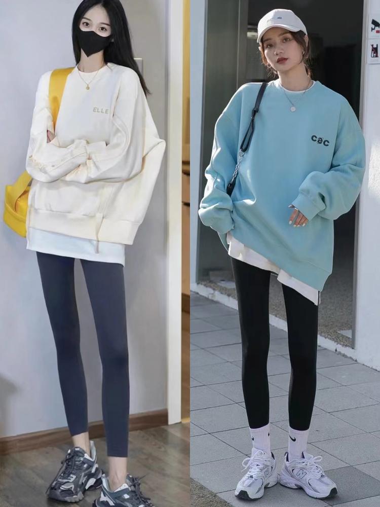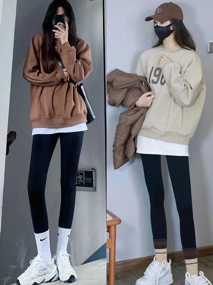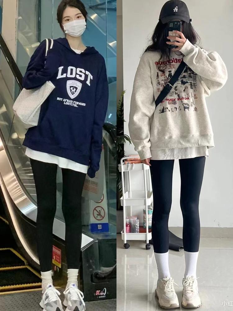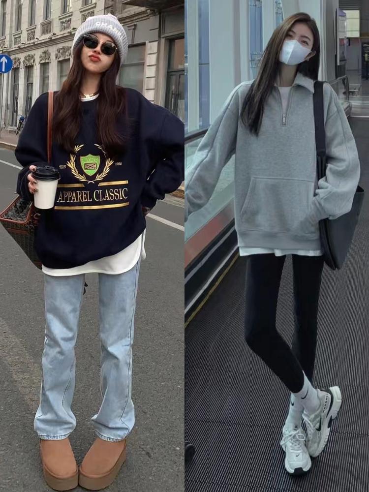 For sisters with bad leg shapes, layering a sweatshirt with wide-leg pants is definitely the first choice. It covers the flesh while making the legs appear straight without any sense of restraint.