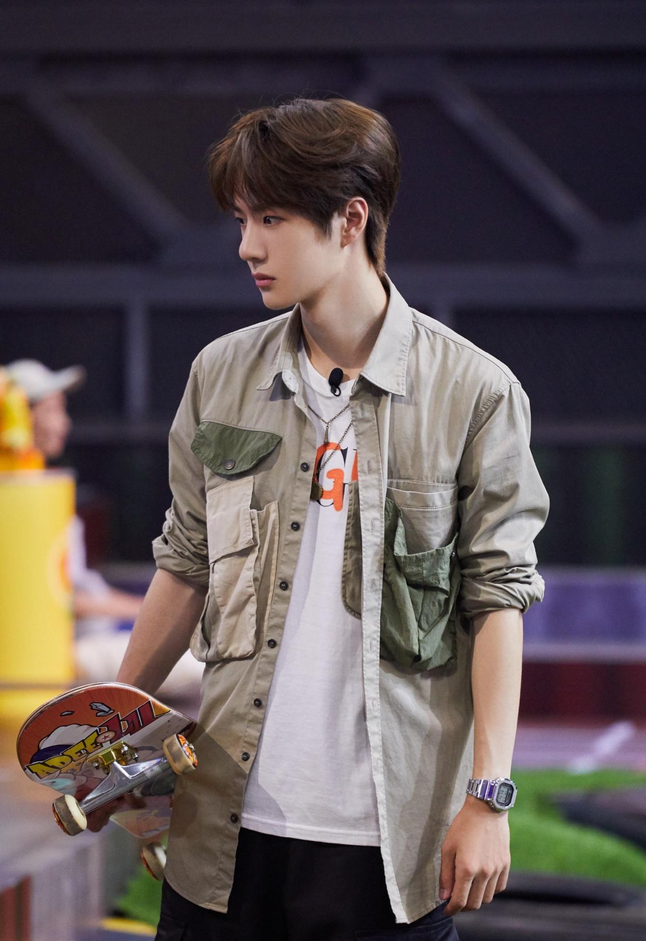 Wang Yibo’s facial features give people a cold and cool feeling, and his hobbies such as skateboarding and motorcycles are also very cool sports. Holding a skateboard He is wearing a work-style T-shirt, which is also very cool. Yibo, who loves skateboarding so much, looks very handsome.