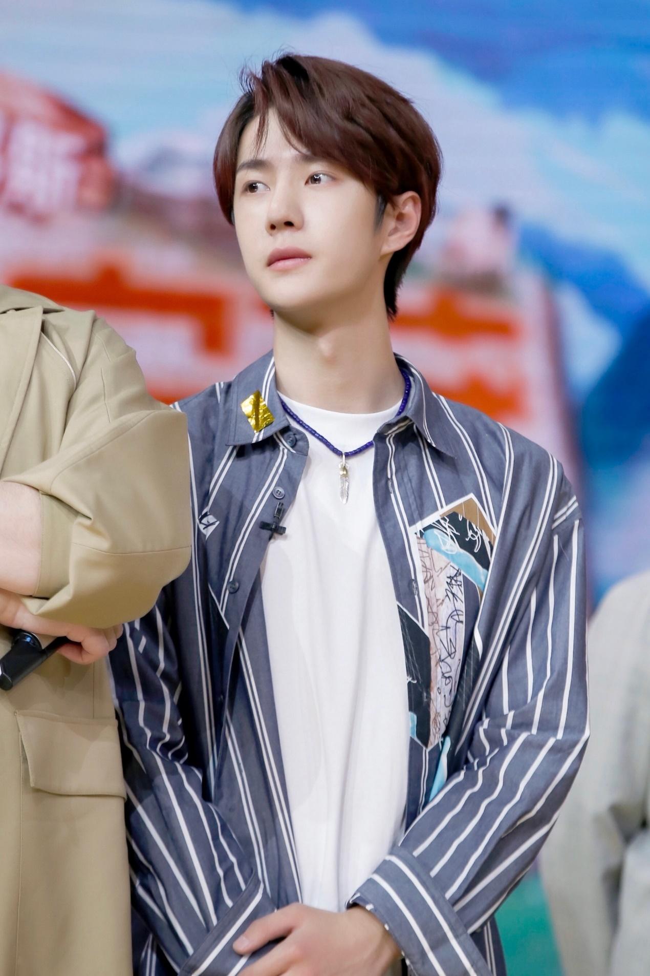 After reading the blog about printed shirts, let’s take a look at the blog about striped shirts. It is still the same way of layering, refreshing And handsome, the blue striped shirt has a quiet and casual feel. The pendant on Yibo’s chest is not only eye-catching and handsome, but also adds a sense of layering to the overall outfit. Wang Yibo is really good at wearing it.
