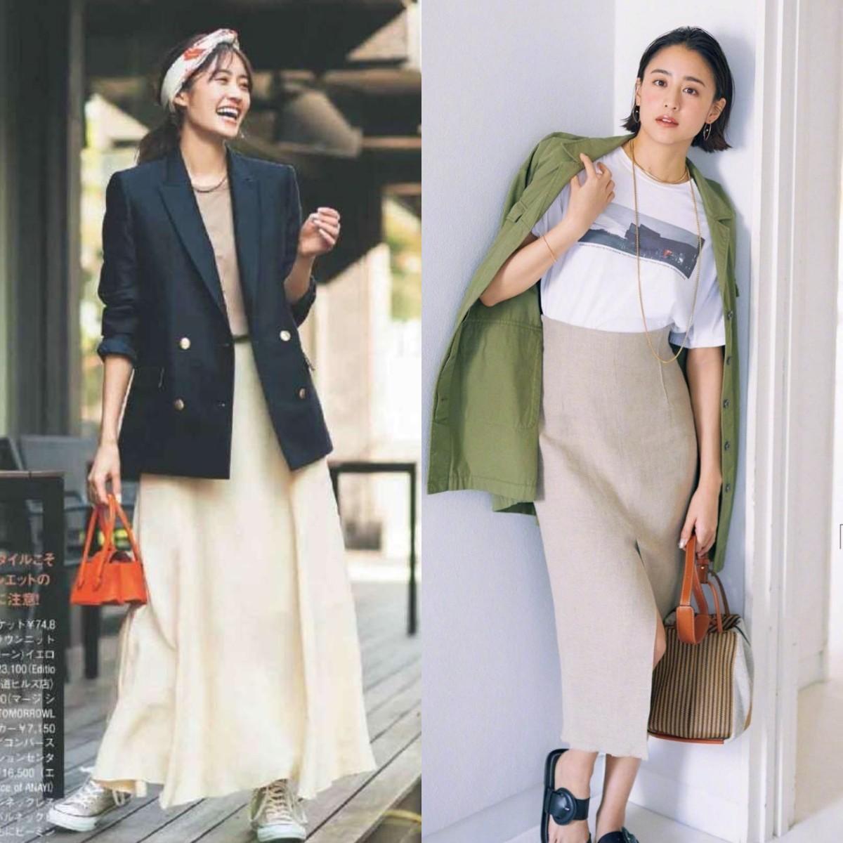 How to layer a jacket with “T-shirt + skirt”