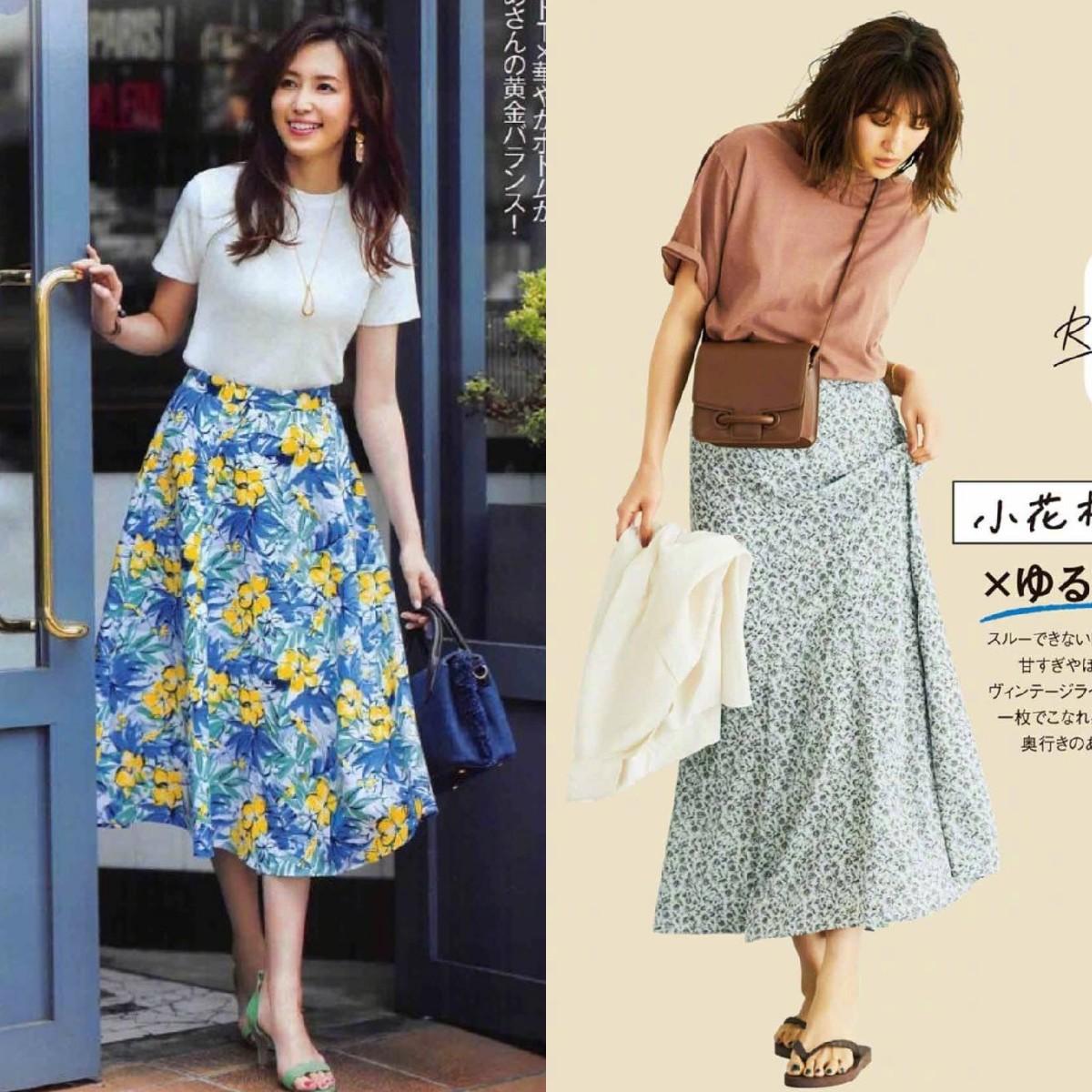 Although the solid color combination is simple and attractive, it is a bit monotonous and can easily lead to aesthetic fatigue. You might as well choose a skirt with printed patterns to make the whole outfit more lively and interesting, and bring a bit of freshness to life and work. Floral elements are romantic and elegant,Paired with a solid color T-shirt, it looks fairy-like and extremely charming. Small florals are fresh, large florals are elegant, and clean florals with a clean background are more advanced.