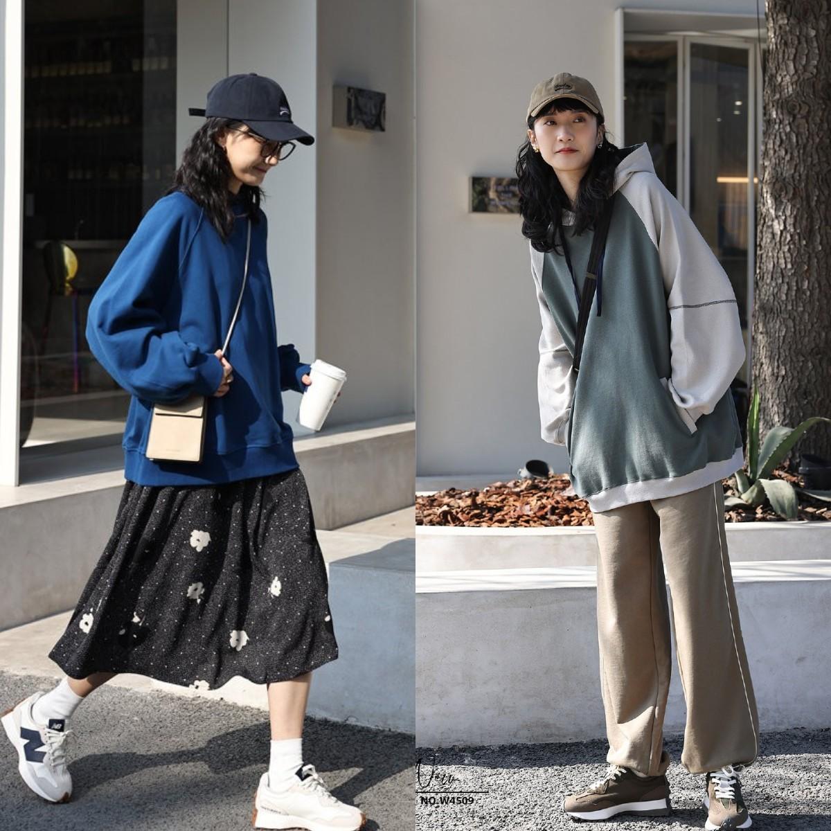 Loose sweatshirts are the choice of many lazy girls,Comfortable and comfortable without any sense of restraint. Even a loose sweatshirt can still be paired with a fashionable effect. A loose sweatshirt can be paired with a slim fit Trousers, or shark pants that are very popular now, highlight the sexy leg lines, are wider at the top and narrower at the bottom, visually creating the effect of long legs. A loose-fitting sweatshirt can also give you an oversize feel. When traveling, pair it with casual flat shoes or small leather shoes to look like a girl who is full of energy.