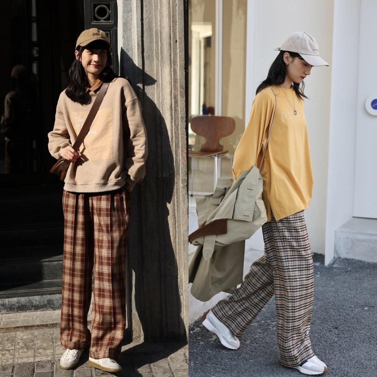 Girls who don’t like long skirts can still choose to wear sweatshirts with trousers, and college-style girls can wear plaid trousers; spring In hot seasons like summer, you can pair it with plaid trousers with a strong drape to keep it from being too stuffy.