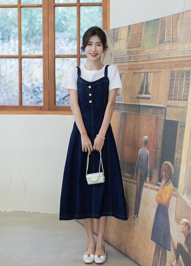 In addition, we can also make some adjustments in the selection of denim skirts. If you want to wear a more energetic look, it is better to choose a combination of T-shirt and suspender denim skirt. Stacking a T-shirt with a suspender denim skirt can not only enhance the sense of layering and reduce the chance of wearing another shirt, but also add a childish touch to your look. Whether you are a girl in her teens or 20s or a woman in her 30s or 40s, they will look great. Can be easily controlled.