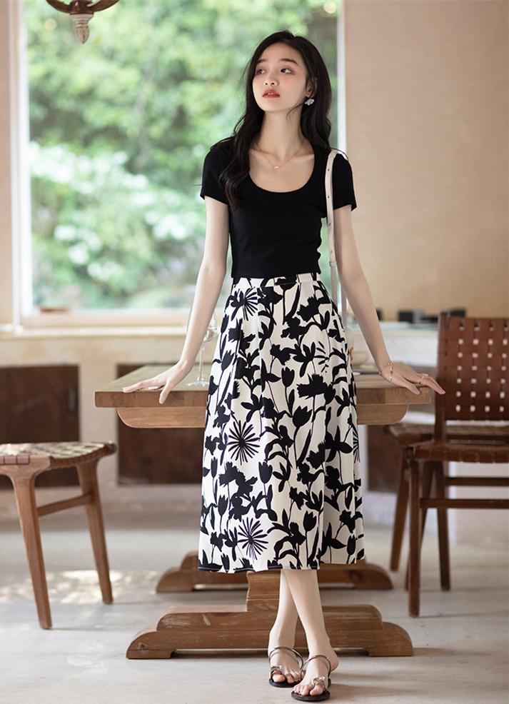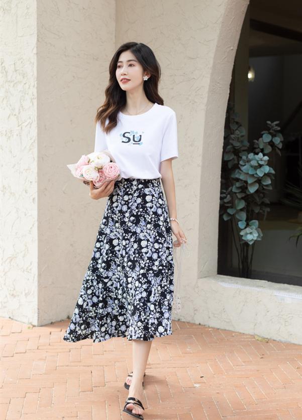 If you want to wear an outfit with a high rate of turning heads, you must not miss the combination of T-shirt and floral skirt. Floral skirts can be said to be an evergreen style all year round. Wearing them during this spring and summer season will not only satisfy the spring and summer atmosphere, but also make your outfit more Korean-style.