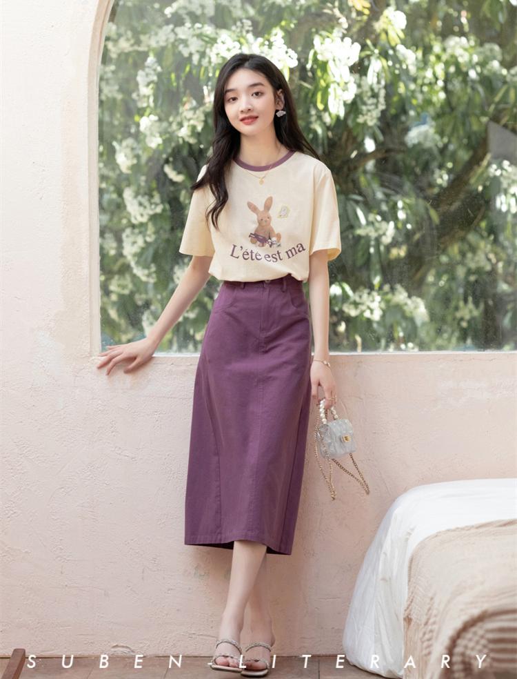 If you want to make your T-shirt and skirt matching more eye-catching, we can also Make some adjustments to the selection of T-shirts. It is recommended that you pay more attention to the design of T-shirts. If you want to focus on the effect of reducing age, you can start with a T-shirt with puff sleeve design and a skirt. It will look more energetic, but at the same time, it can also reduce the probability of T-shirts being worn together.