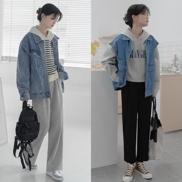 Sisters who are in an area where the temperature is not very low, you can pick up a denim jacket as a match. The denim jacket has a casual and comfortable style, matching the style of a sweatshirt.��, the two will not feel inconsistent when paired together. When matching, we should give priority to sweatshirt styles with prints to increase the fashionability of the style, so that the style will not appear too monotonous and boring.