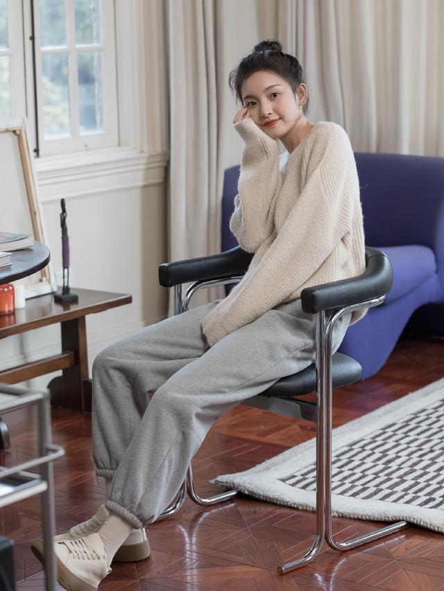 Simply put, sweatpants are very similar to leggings. The version is looser and has better flesh-hiding effect; the fabric is also very thick and warm enough; the style is casual, natural and unrestrained, especially suitable for lazy seasons like winter.