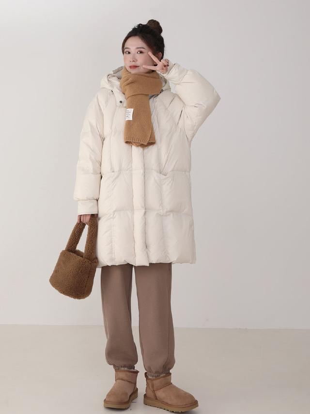 Down jacket can be regarded as a life-saving weapon in winter. It is the simplest to match it with sweatpants, and it is also the easiest to wear to create a soft and warm atmosphere. Sensational. The white long down jacket is paired with beige sweatpants + snow boots. The color is soft and ladylike. It is age-reducing and very fashionable. How can you not love it.