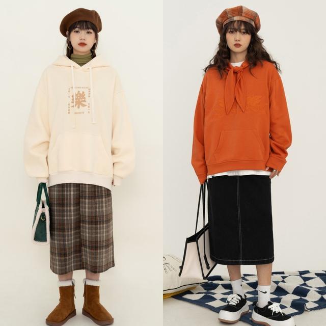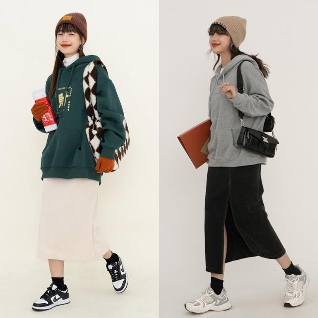 In the combination of sweatshirt + skirt, it is not suitable to choose a skirt style that is too slim, as it will not match the style of the sweater. Choose more straight-cut and A-line skirts, which will look more Japanese-style and academic. The more you look at them, the more stylish they become.