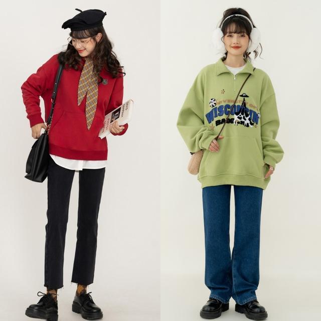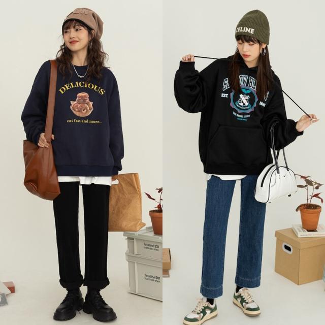 At the same time, this type of sweatshirt is not as bulky and cumbersome as the oversized style. It has a casual and comfortable feel when worn, and can be worn by both young sisters and mature women.
