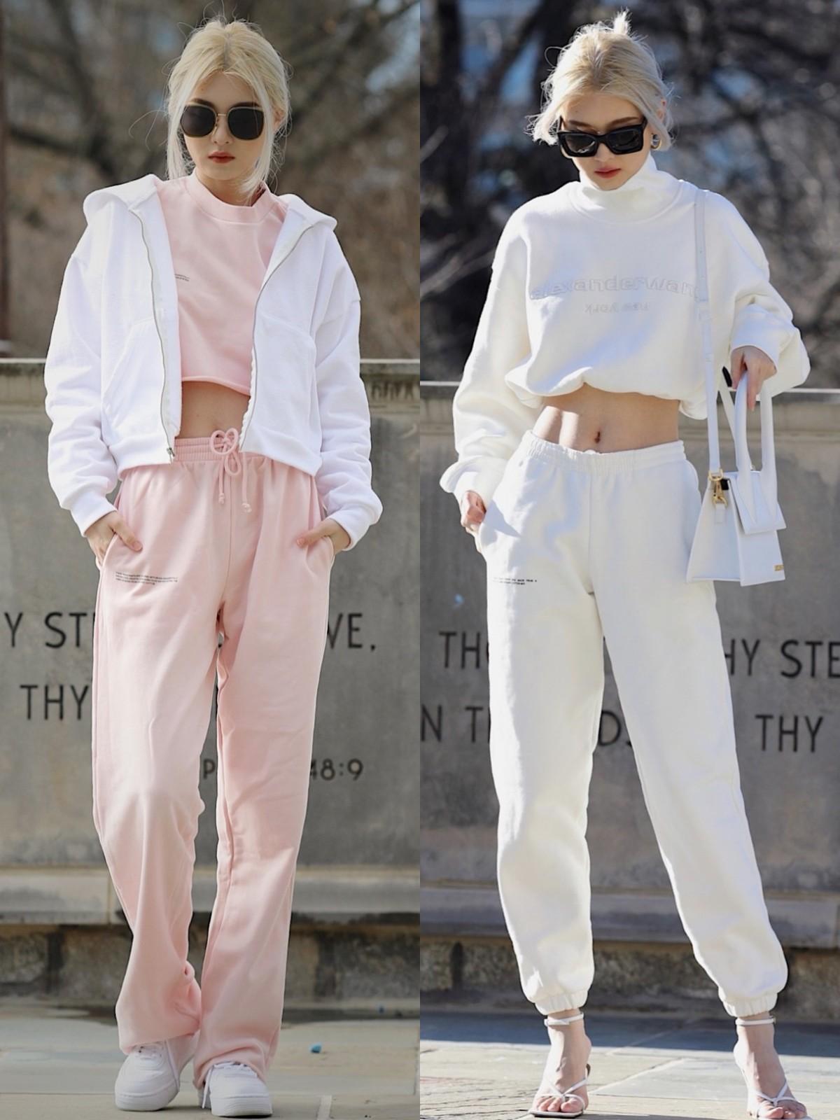 But if you want to get a high return rate in spring, it is recommended that you try more bright color combinations. For example, in the picture below, all white or a classic color sweatshirt paired with candy-colored sweatpants can both brighten the look and reduce age at the same time.