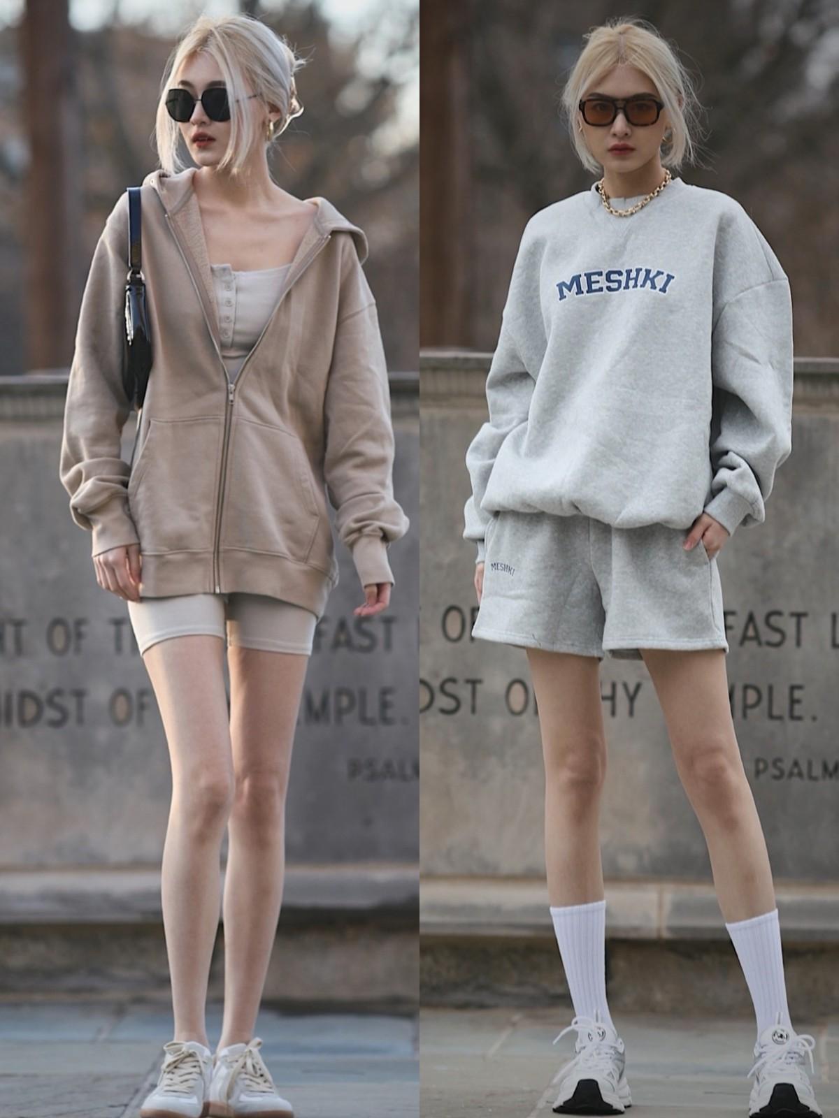 The most unmissable way to wear in spring is to wear shorts and a sweatshirt with shorts, which are originally popular items in spring and summer. The length is above the knee and can completely expose part of the thighs and calves. It can not only effectively extend the leg lines but also create a refreshing and age-reducing effect.
