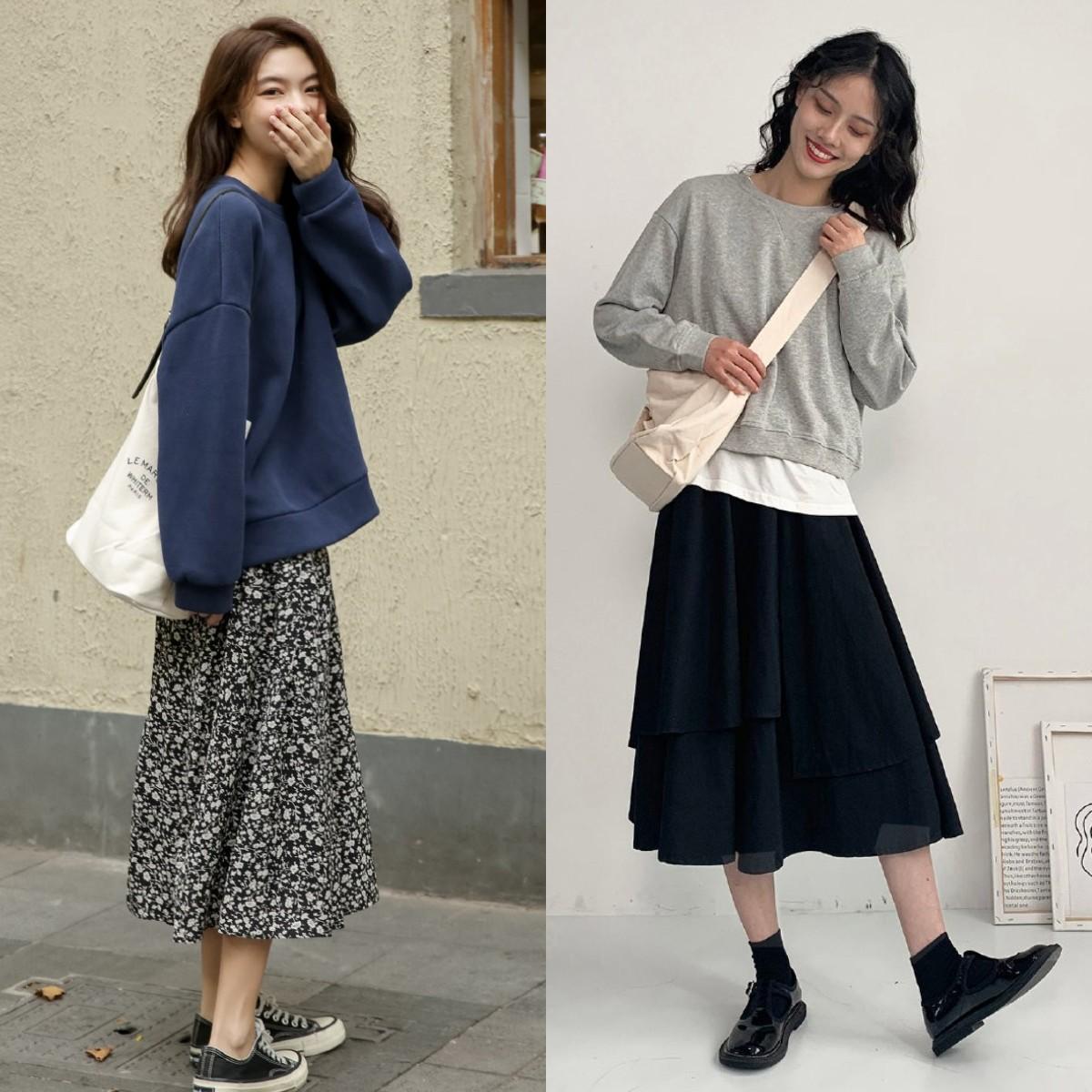 Sisters who still don’t know what to wear, don’t miss the combination of these sweatshirts and skirts. They look younger and look more elegant, so don’t miss it. !