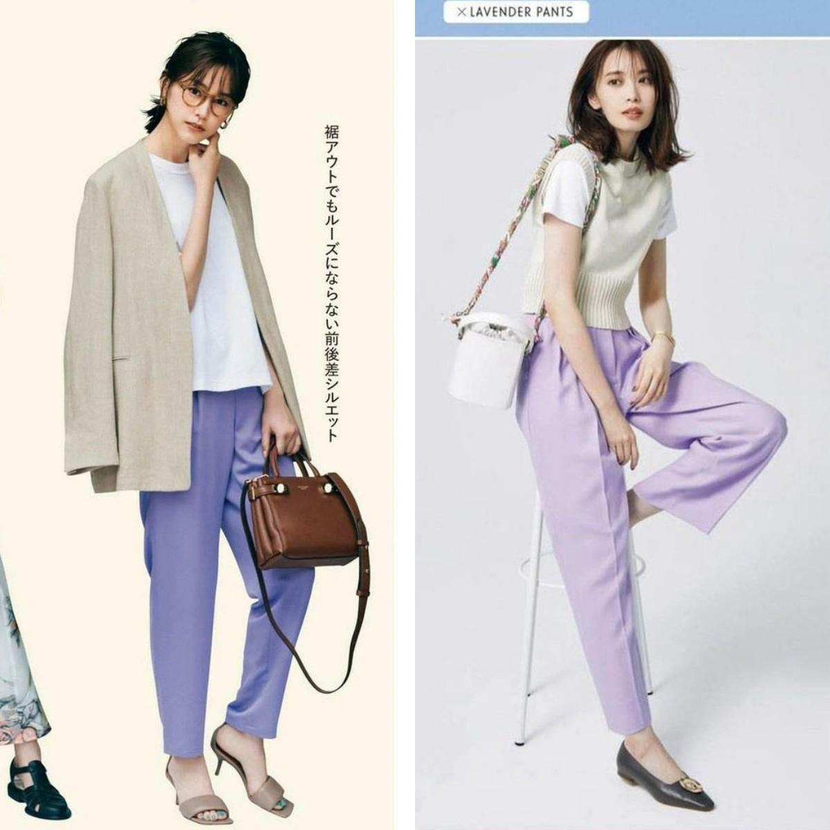Young and mature sisters can choosewhite T-shirts and With lavender purple pants, the texture and mystery of lavender can well neutralize the casual temperament of the white T-shirt, making the overall match more mature and restrained. The fresh and elegant taro purple paired with a white T-shirt can create a lively and smart look, which is gentle and eye-catching. Sisters who want to wear it to look younger should not miss it.