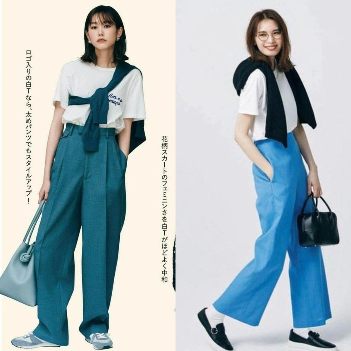 Lazy wide-leg pants and a white T-shirt are also highly compatible. The wide-leg pants have a loose fit. It is simply good news for fat girls. The upper body can easily have a “paper man” experience, and the slimming effect is perfect.