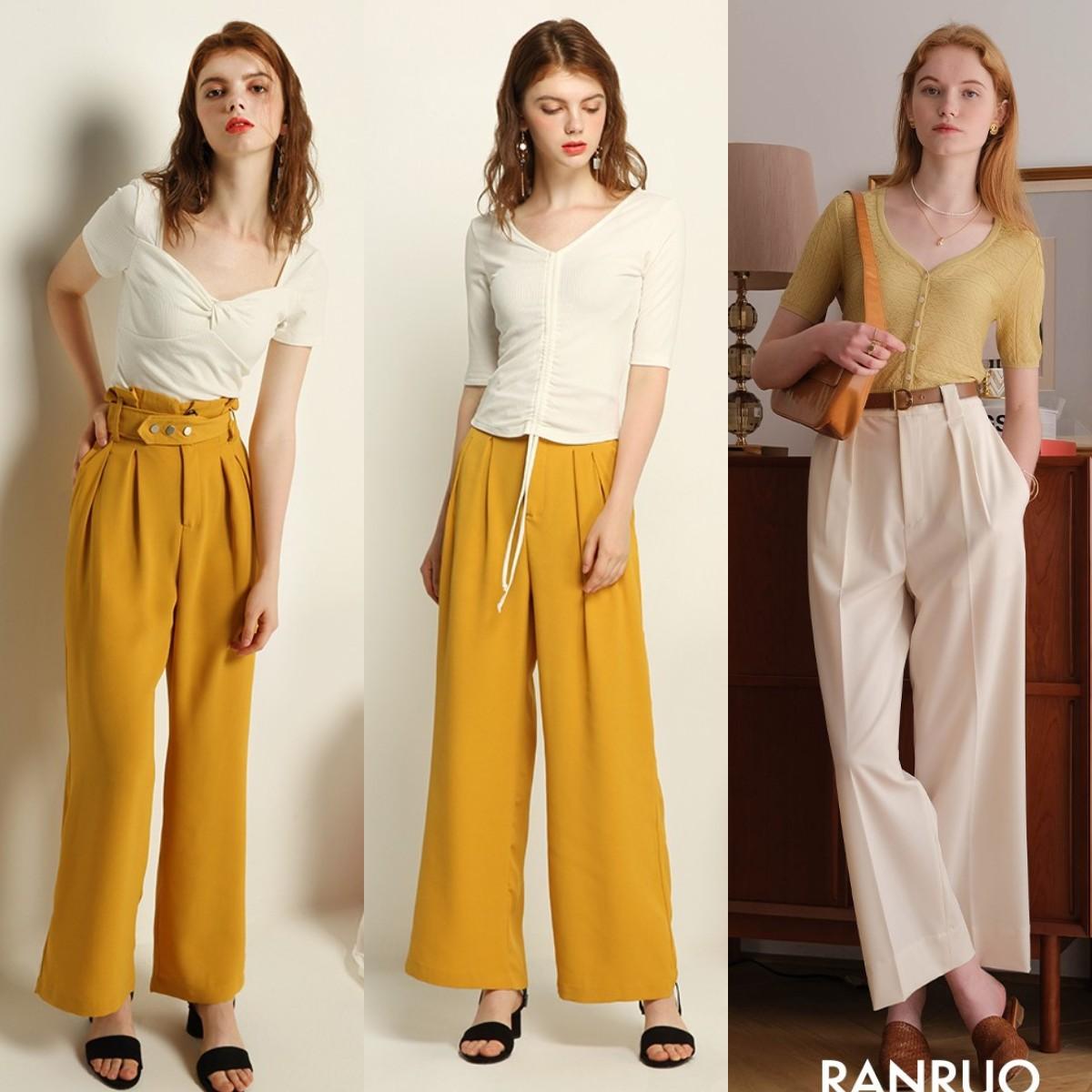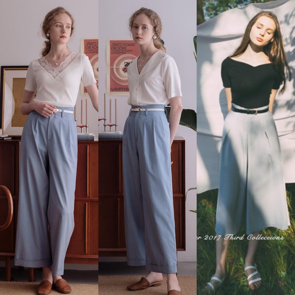If you are over 30 years old or working women, you can try the one in the picture below Choose high-waisted and floor-length suit wide-leg pants. Enhancing the drape of the trouser legs can not only lengthen the proportions of your legs vertically, making your legs look longer when worn, but also create an intellectual and high-end charm.