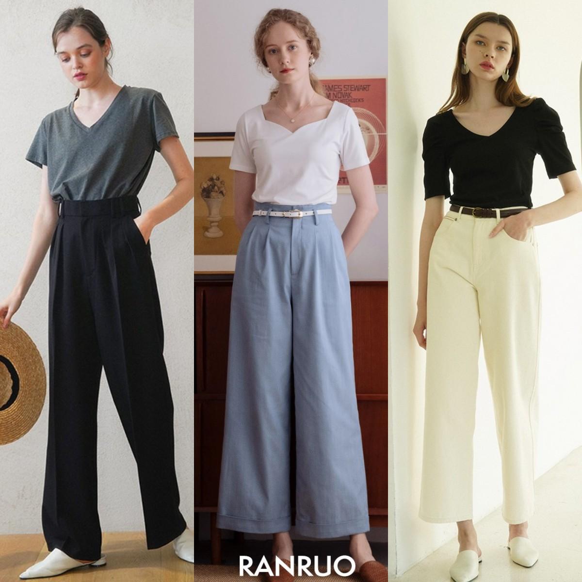 The most important thing for women with a slightly fat figure is to pair wide-leg pants with a T-shirt. However, if you want to look slimmer, it is recommended to wear a slim-fitting T-shirt with wide-leg pants, or tuck the hem of the T-shirt into the waistband to tighten the waistline and create a relaxed look. The effect is super slimming.
