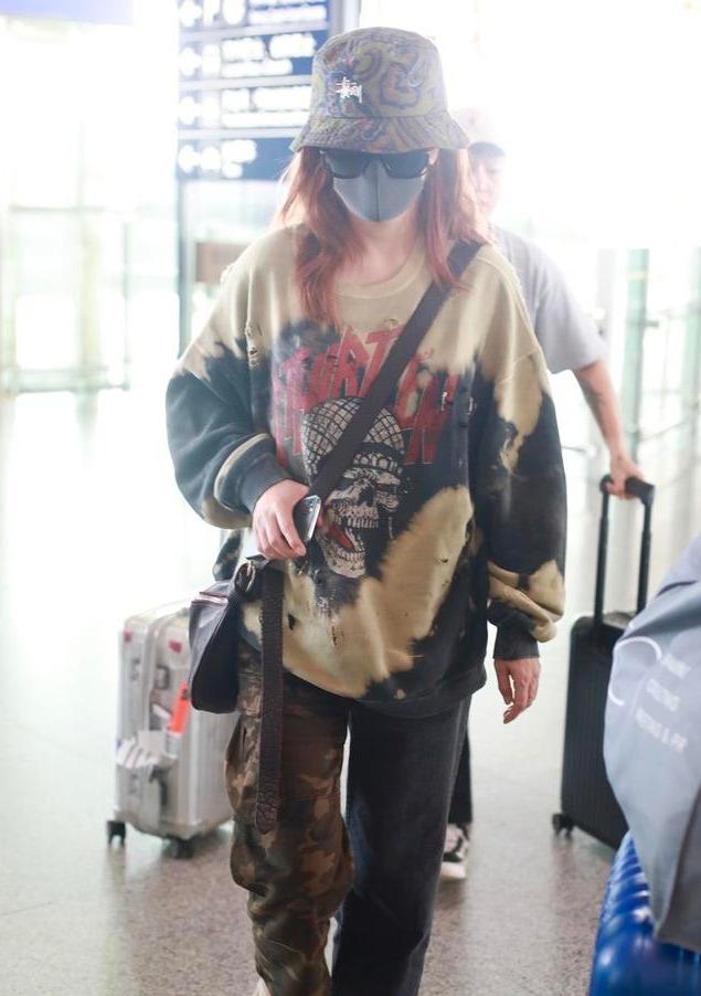 And her sweatshirt with a skull pattern is not only surprising, the pants she wears are the real highlight. The style of the pants is very unique, with one side having a camouflage pattern and the other side being pure black. The different “AB pants” on both sides are very personalized and fashionable, and the clothing with cool skull patterns is even more handsome. Pants are generally symmetrical, but wearing a pair of asymmetrical pants will be more eye-catching. When wearing pants for daily wear, you can choose pants with different holes or irregular patterns to better highlight your personality.