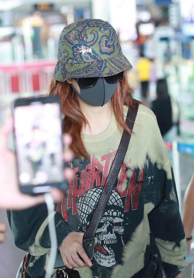 She is wearing a loose and baggy sweatshirt with a very exaggerated skull pattern printed on it. The dark pattern makes this clothing full of life. Rebellious, fashionable and handsome, with neutral charm. And this sweatshirt is very loose, covering Zhao Wei’s figure curves, blurring her gender, and making her look more handsome. The design of this dress is very unique. The unique pattern makes this dress have a strong sense of presence. It is very suitable for people who like to show their personality.