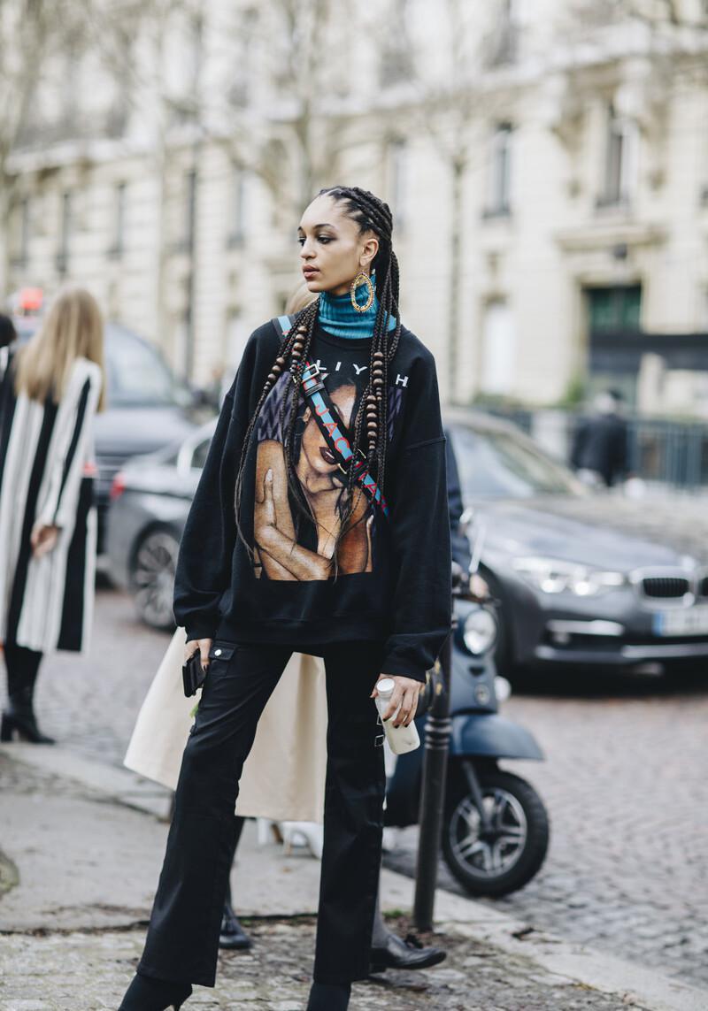 When wearing pure black clothing, it will inevitably look monotonous and plain. You need to match it with a brightly colored bag to break the monotony, or print colors on the sweatshirt Unique eye-catching pattern.