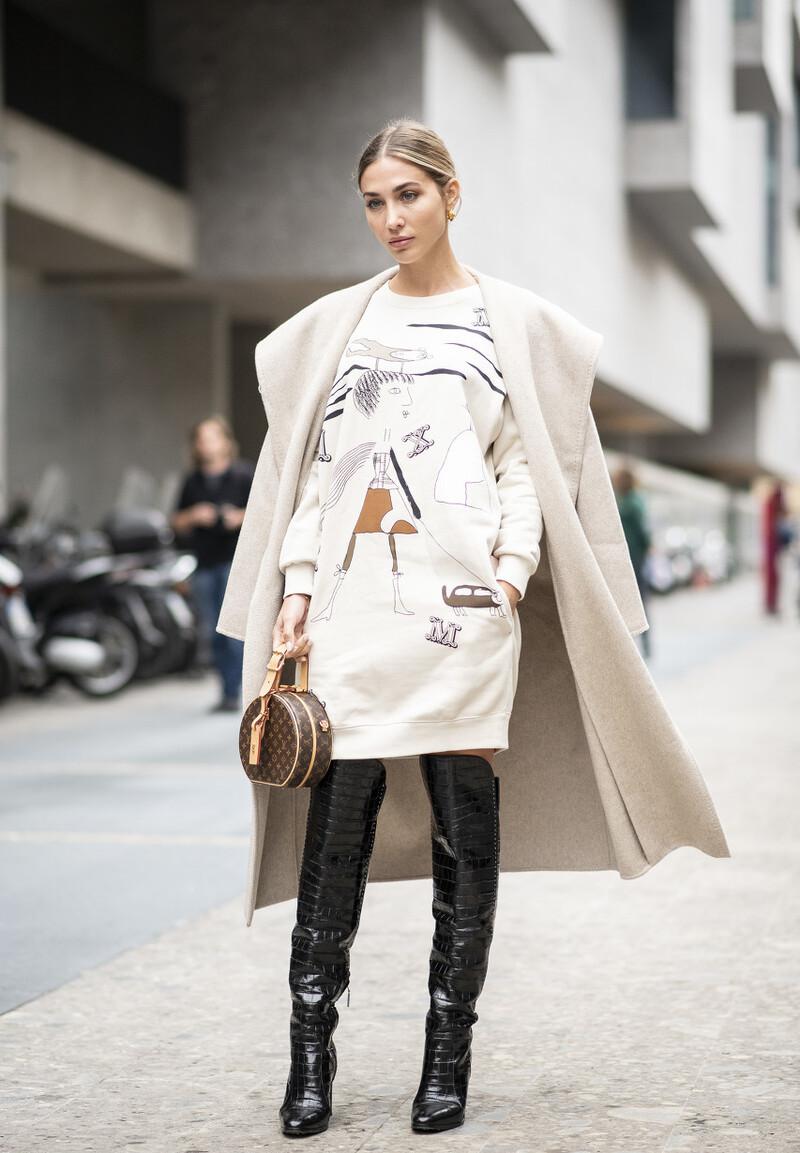 A fat sweatshirt can cover up the curves of the upper body and has a good slimming effect, but it cannot modify the lines of the legs and body proportions.