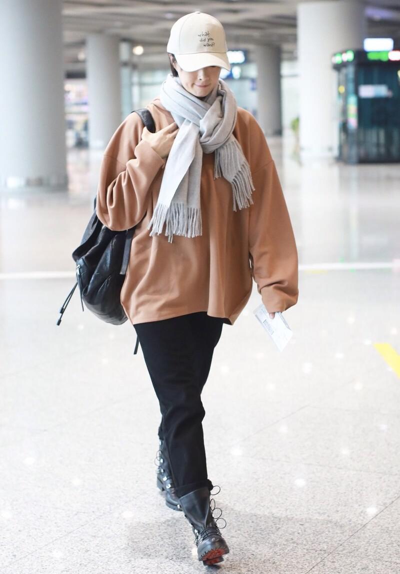 Don’t imitate Jiang Xin when wearing a sweatshirt. This way of wearing a sweatshirt makes you look fat and short. It all depends on your temperament to hold it up. Although she has a good temperament, her clothes are very ordinary. Wearing an ordinary sweater like this can make her gain weight.