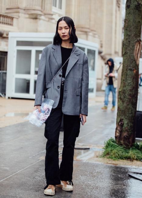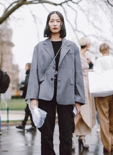 When she stepped off the T stage, Zhao Jiali transformed into an exquisite girl. A blue suit is very noble. Paired with a pair of black slim-fitting pants, the overall look is very simple and very suitable for daily matching.