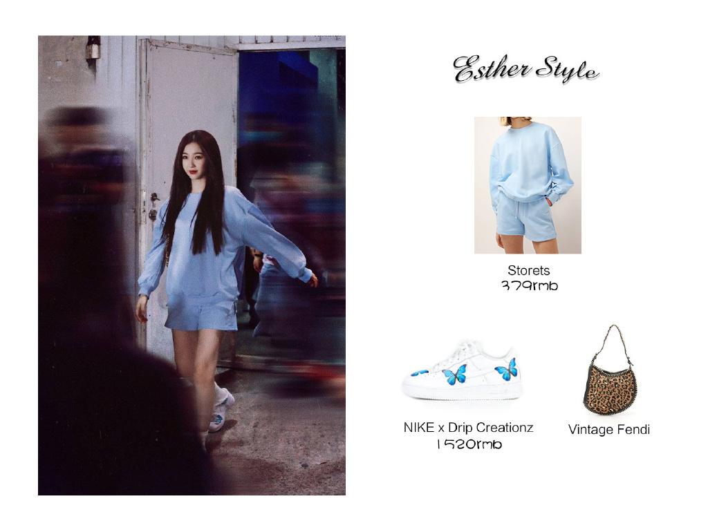 A casual sports suit, blue is a fresh and cool color that also shows off the skin tone, which is very suitable for her girlish look. The key is to wear this set The editor found out that he could afford it, and was suddenly moved to tears. The butterfly print of this pair of co-branded sneakers from Nike is its biggest attraction.