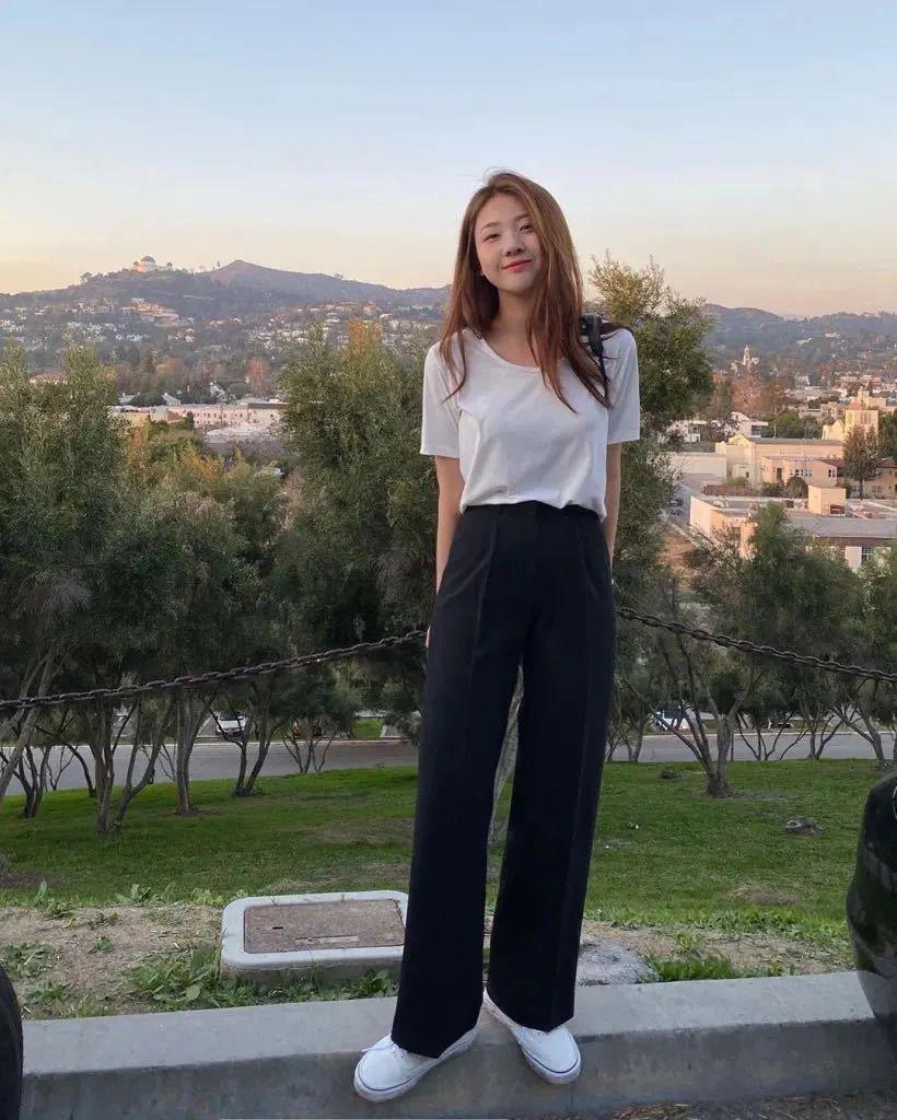When paired with black wide-leg pants, you can’t go wrong with the classic black and white combination, and it is also more classic and versatile. The most important thing is The best are black wide-leg pants, which will make you visually slimmer. Carefully tuck your top into the wide-leg pants to make you look taller and slimmer.