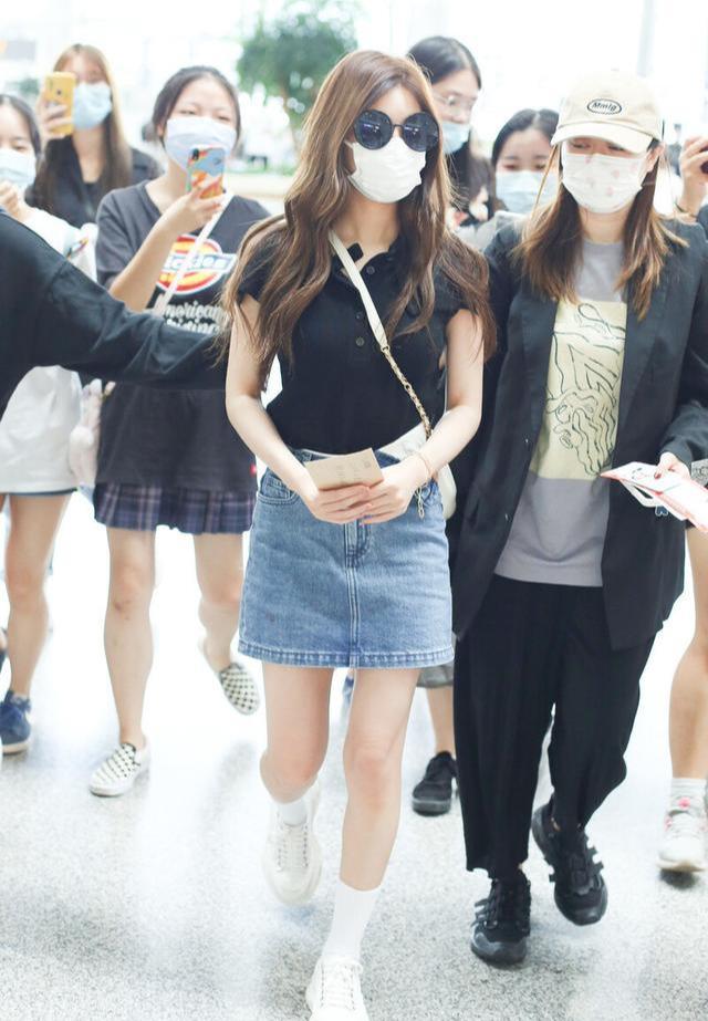 Zhao Lusi is also too thin. She wears a POLO shirt and a denim skirt. She has a high waist and has it turned down to look really fashionable. Zhao Lusi’s denim skirt is simple and fresh, showing her slender figure and lively temperament.