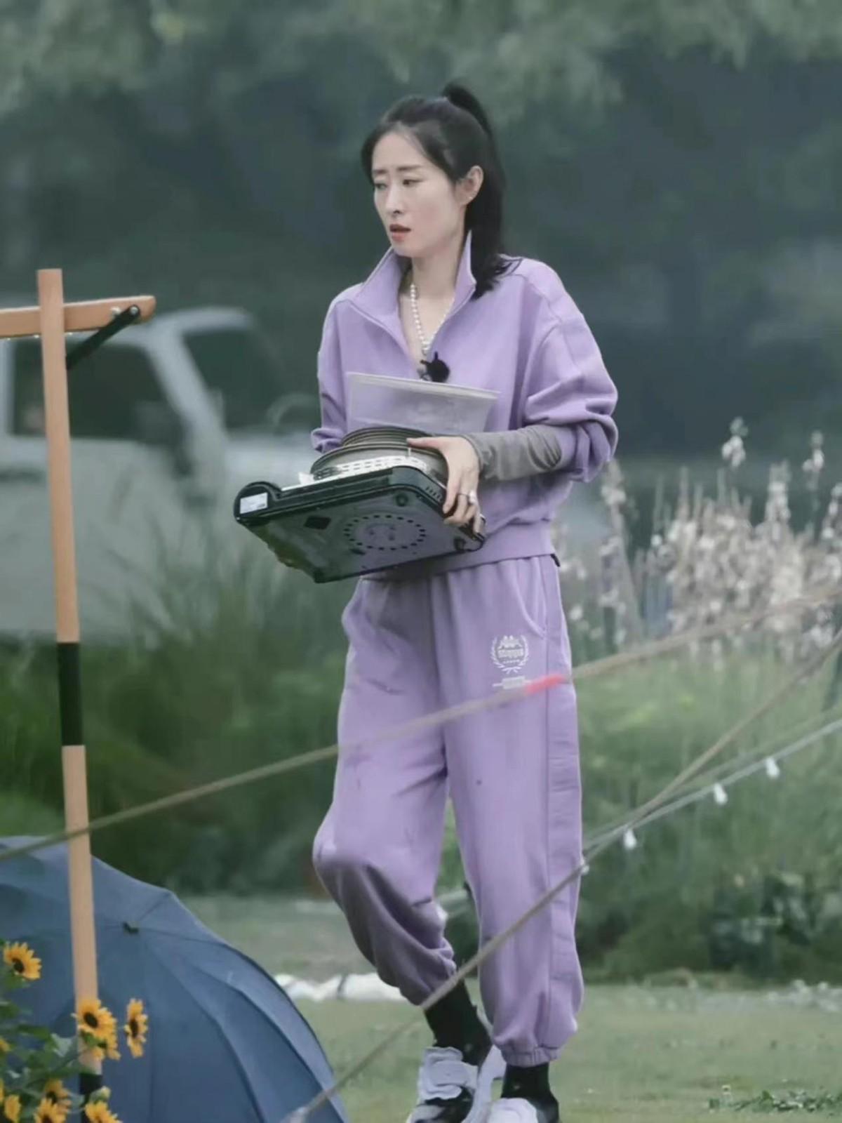 Liu Mintao chose a purple sweatshirt and trousers of the same style and color. Not only will the outfit not be inconsistent, , it can also look youthful and age-reducing when worn, and it also looks good when paired with it, showing the temperament and status of middle-aged and elderly women.