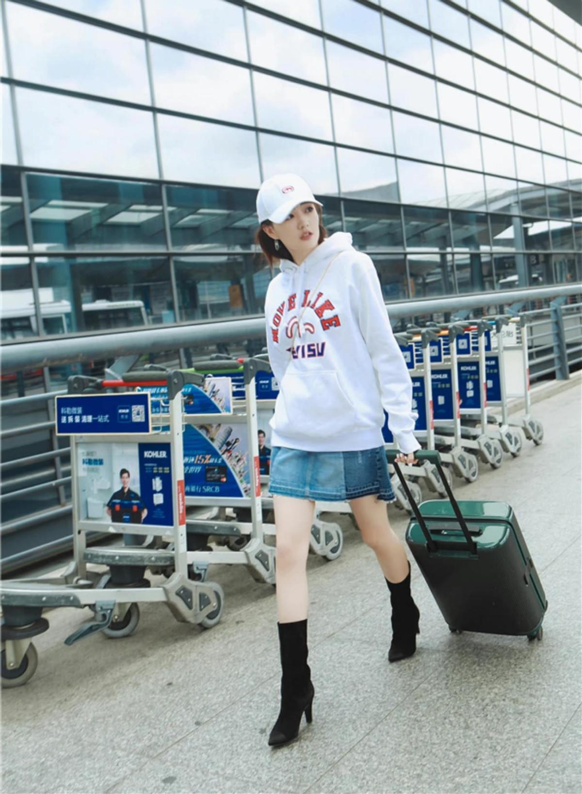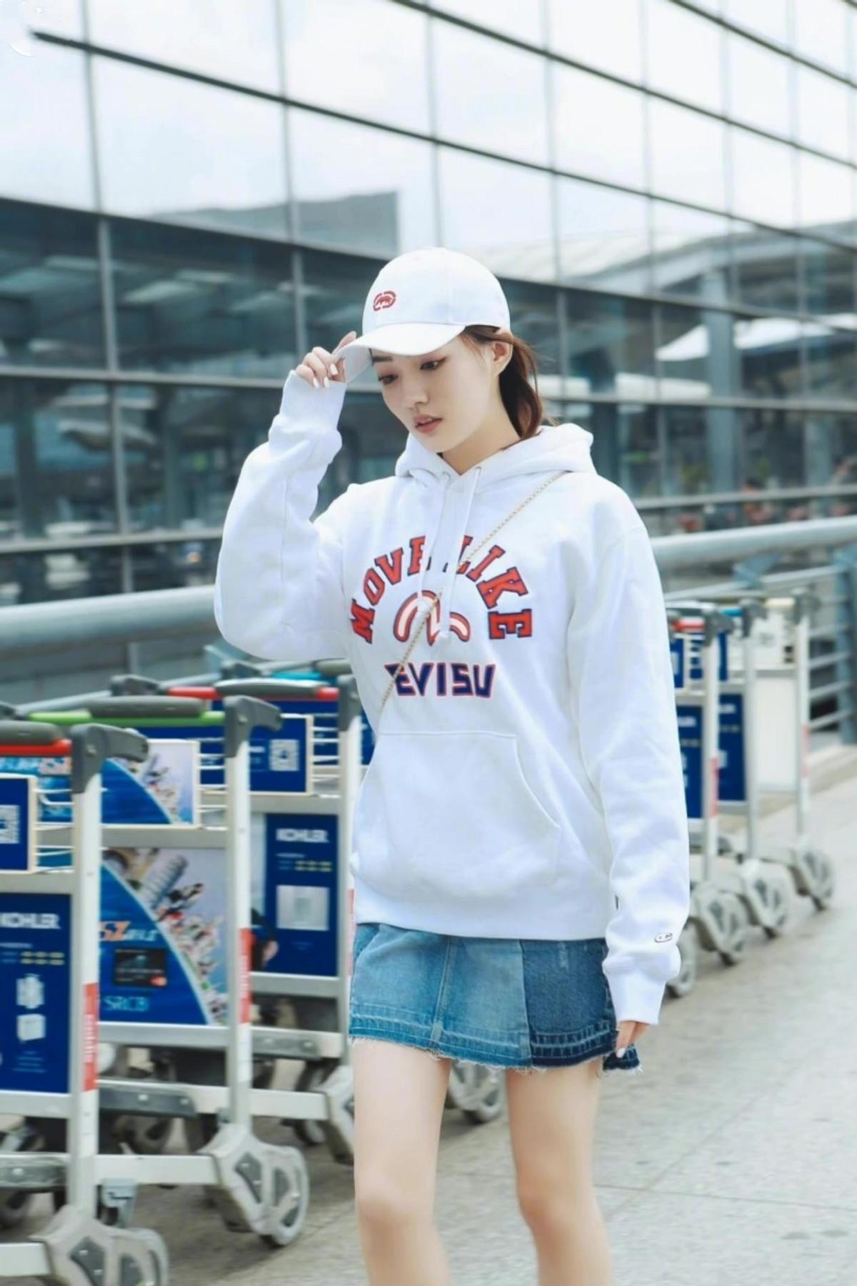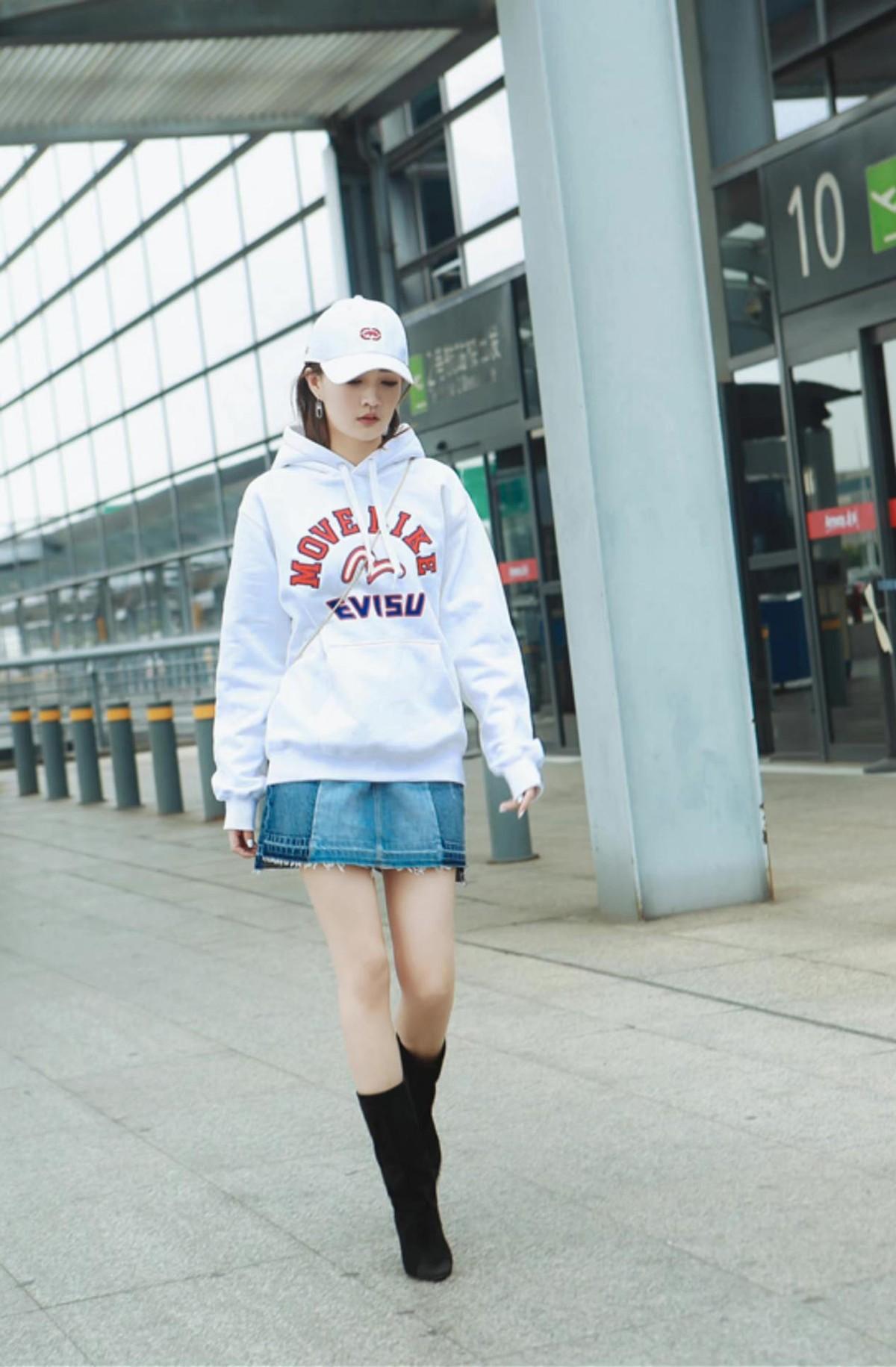 So Xu Lu is really fashionable. She wears a “sweatshirt + skirt” to show her good temperament, and she looks very cute.