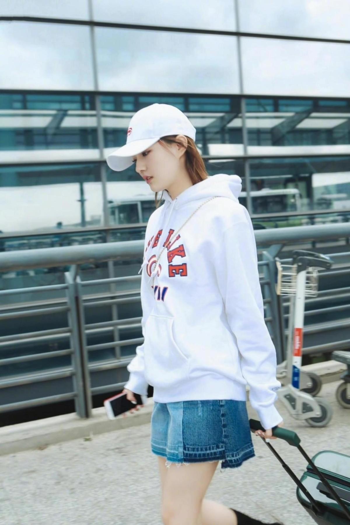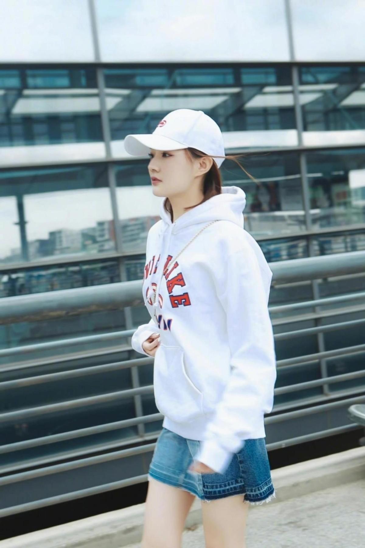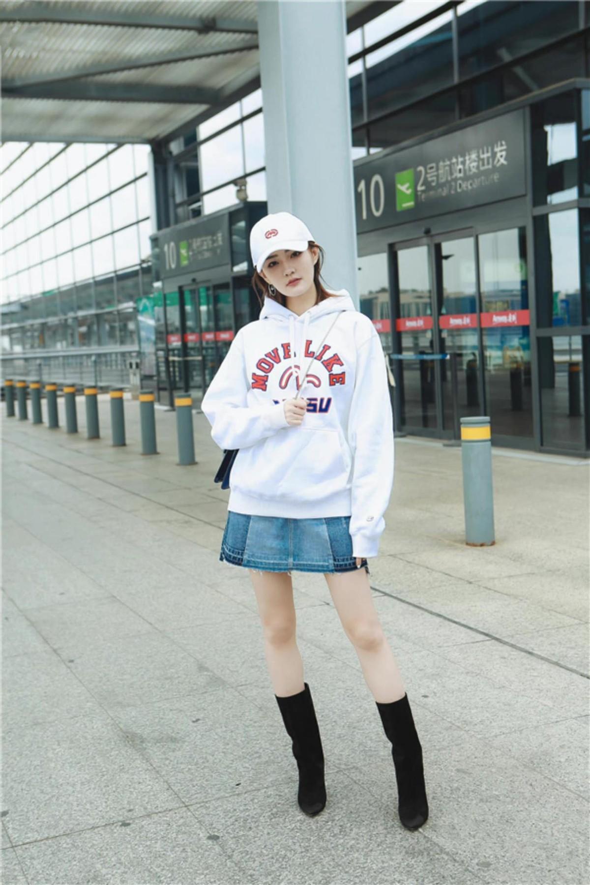 So Xu Lu is really fashionable. She wears a “sweatshirt + skirt” to show her good temperament, and she looks very cute.