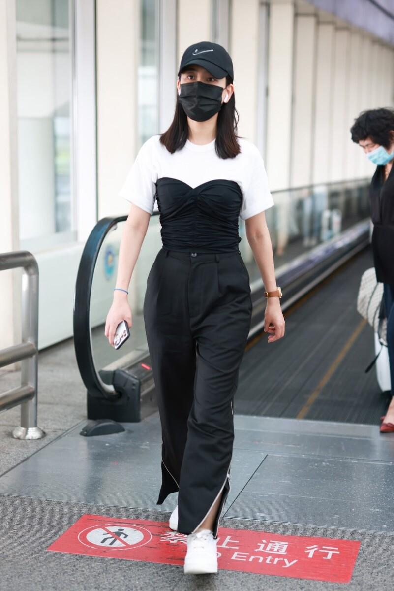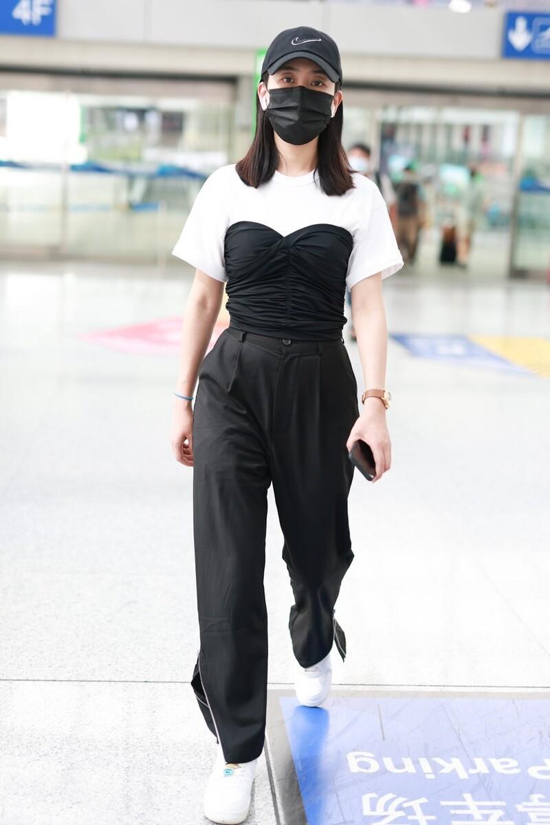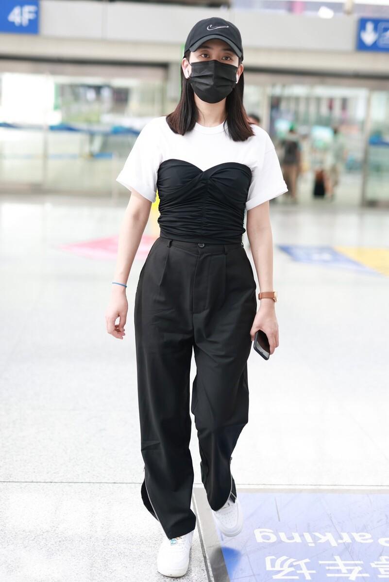 Ma Su uses a corset and tube top that others can’t understand and matches it with a white T to look trendy. This style is really fashionable. It is also good-looking, and the way of layering shows a youthful style. The classic black and white combination not only highlights the sense of fashion but also increases the overall aura. The waistband and tube top not only show your figure, but also look good.