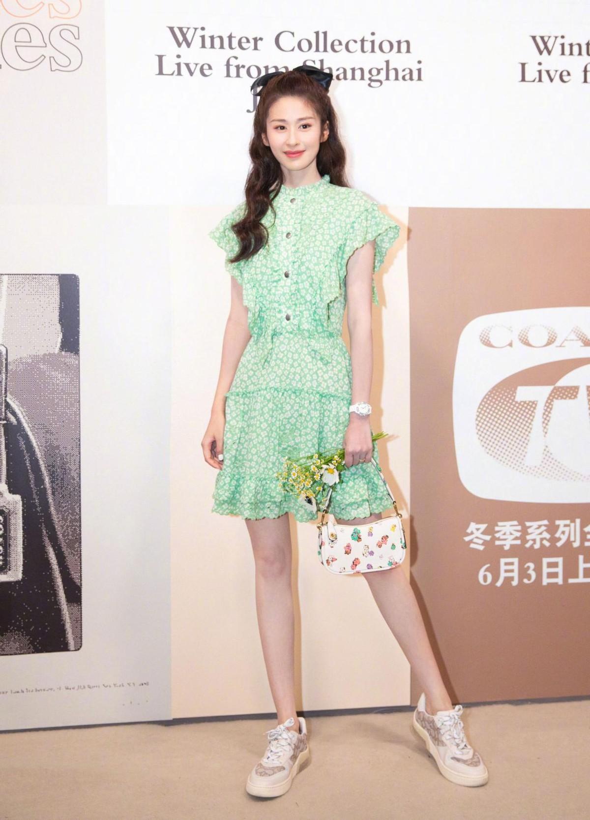 Green is a very fresh color, very eye-catching White can enhance the overall skin tone. At the same time, this color looks very energetic, like an elf in spring. She paired it with simple makeup, which is fresh and reduces her age.