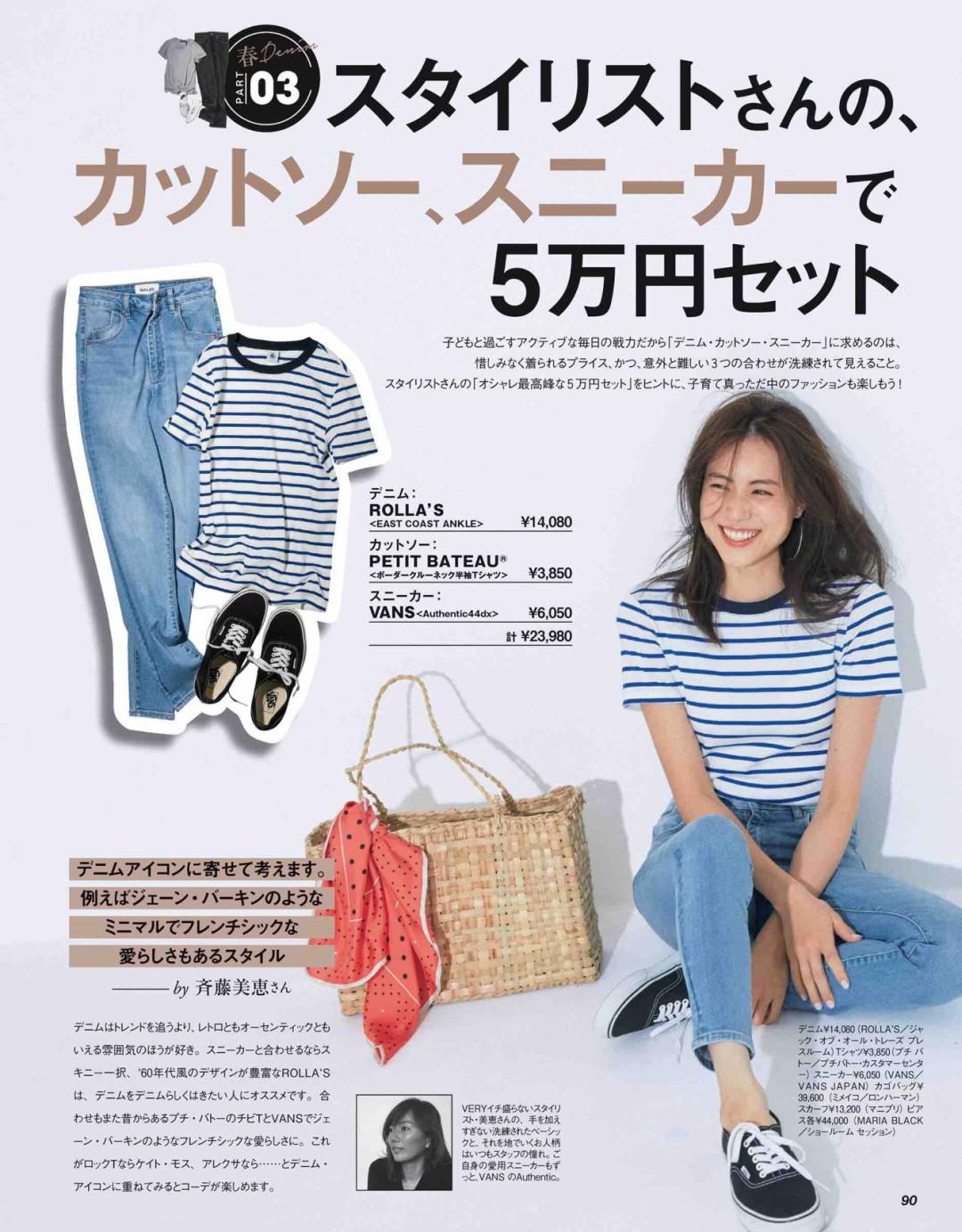 In addition to half-stuffing, there is another way to highlight the waistline, and that is to directly tuck it in. Layer a T-shirt with jeans to accentuate your silhouette.