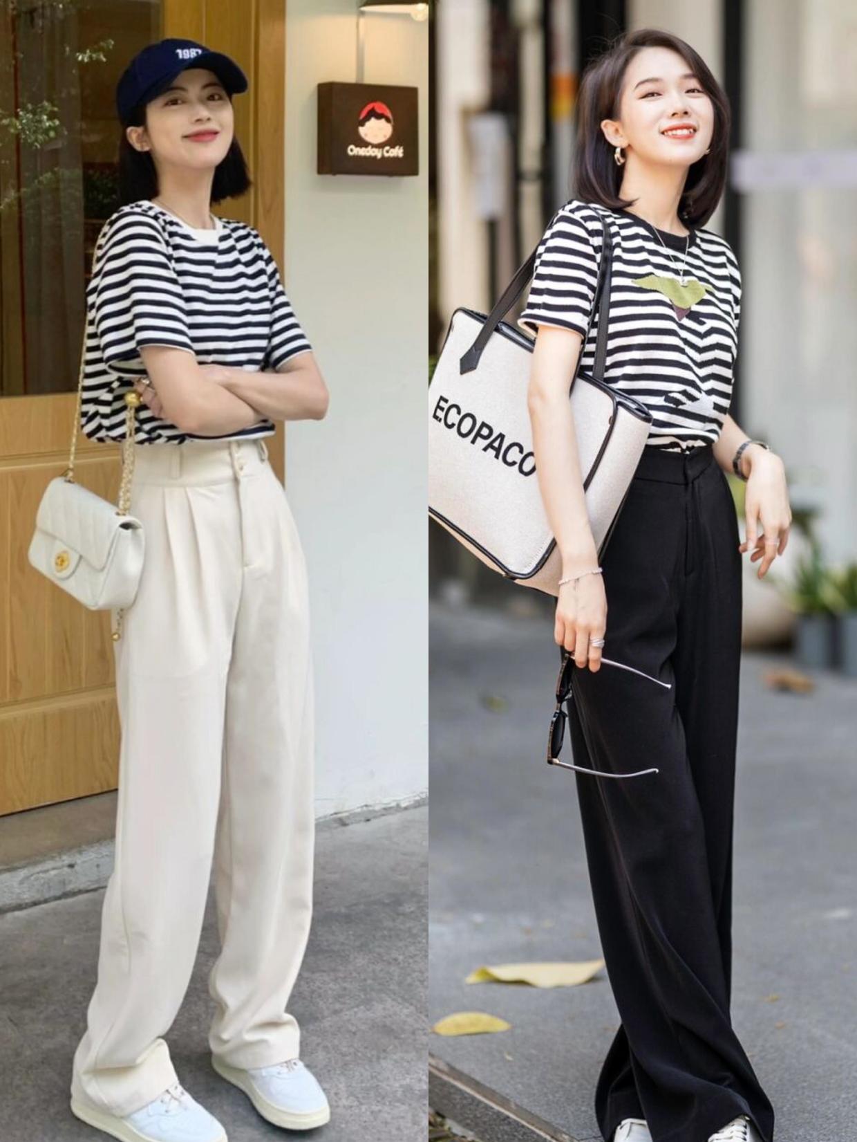 If solid color T-shirts feel a bit samey, you might as well try a style that incorporates striped printing. In fact, stripes are a very classic element, and you can buy them with confidence and boldness. However, it is recommended that all fairies try to wear solid color bottoms when matching striped T-shirts, so that they will not look too fancy.