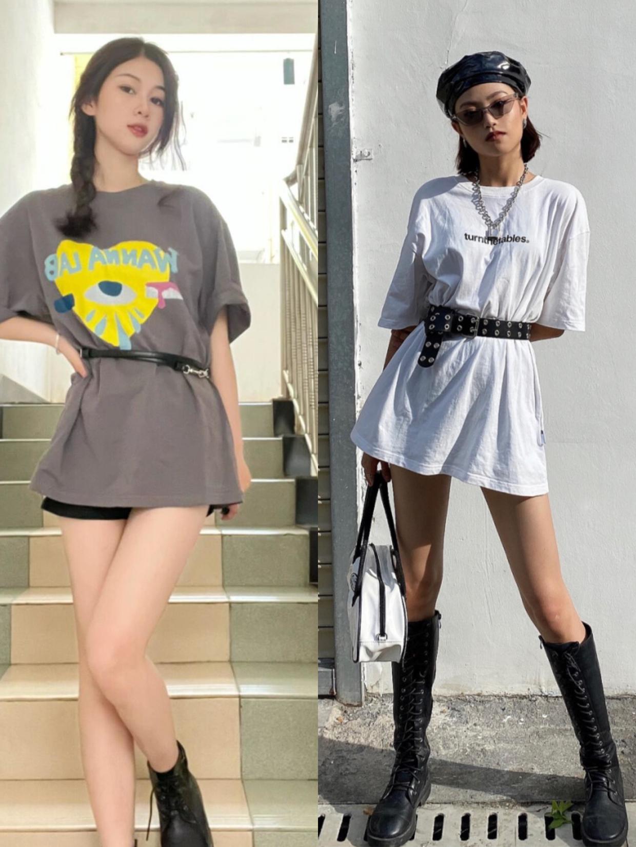 Summer is a good season to show off your figure. Many girls have particularly perfect leg lines, so try to show them off at this time. The matching method of incorporating the T-shirt into the missing bottoms can not only make the legs more slender, but the most important thing is that it can vividly show the lines of the legs. If you feel that your calves are not very straight, you can also wear a pair of high boots.