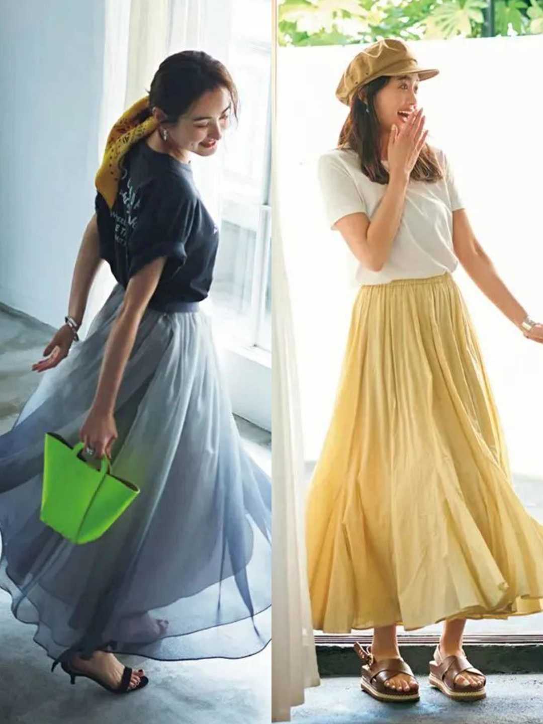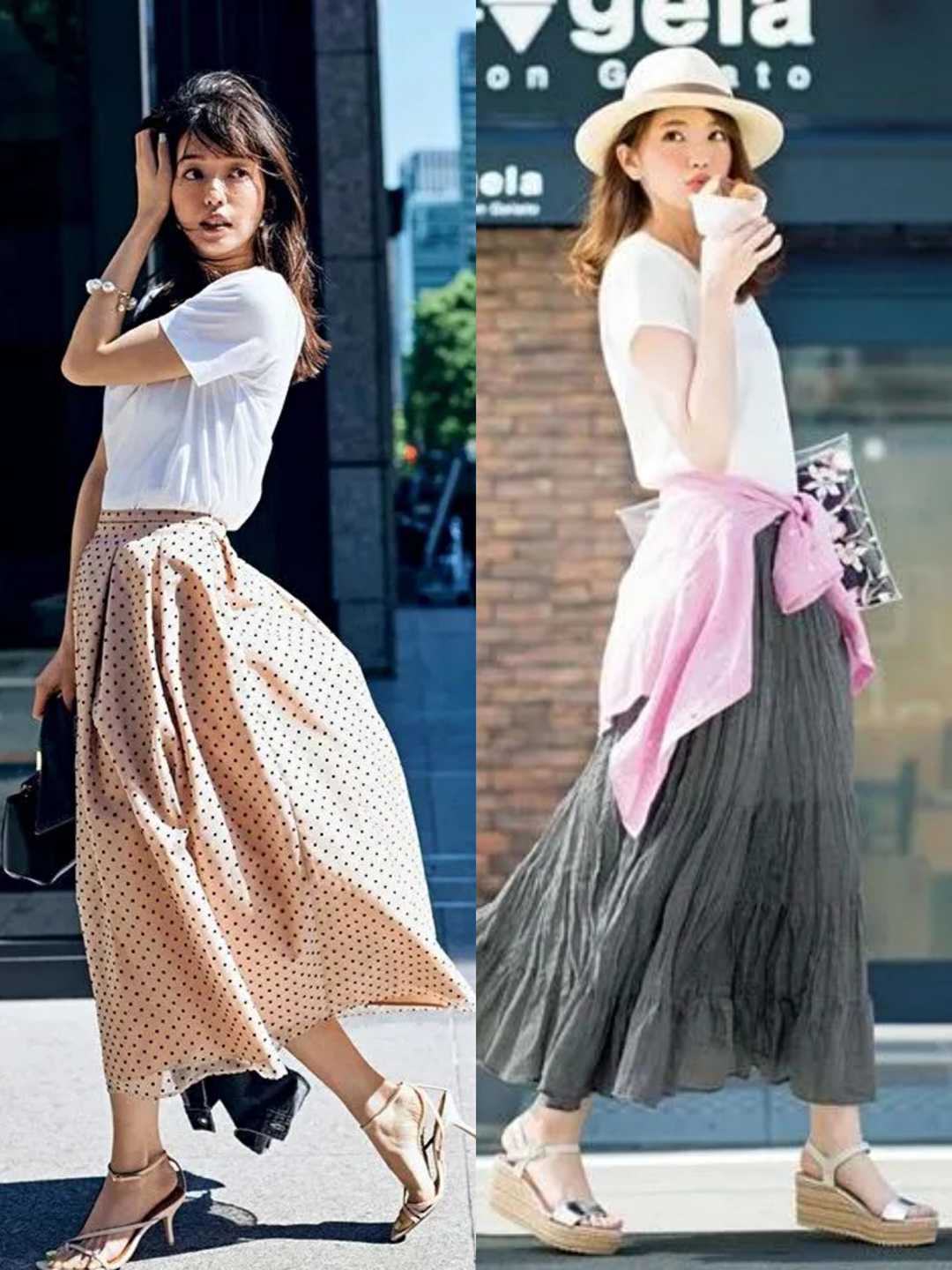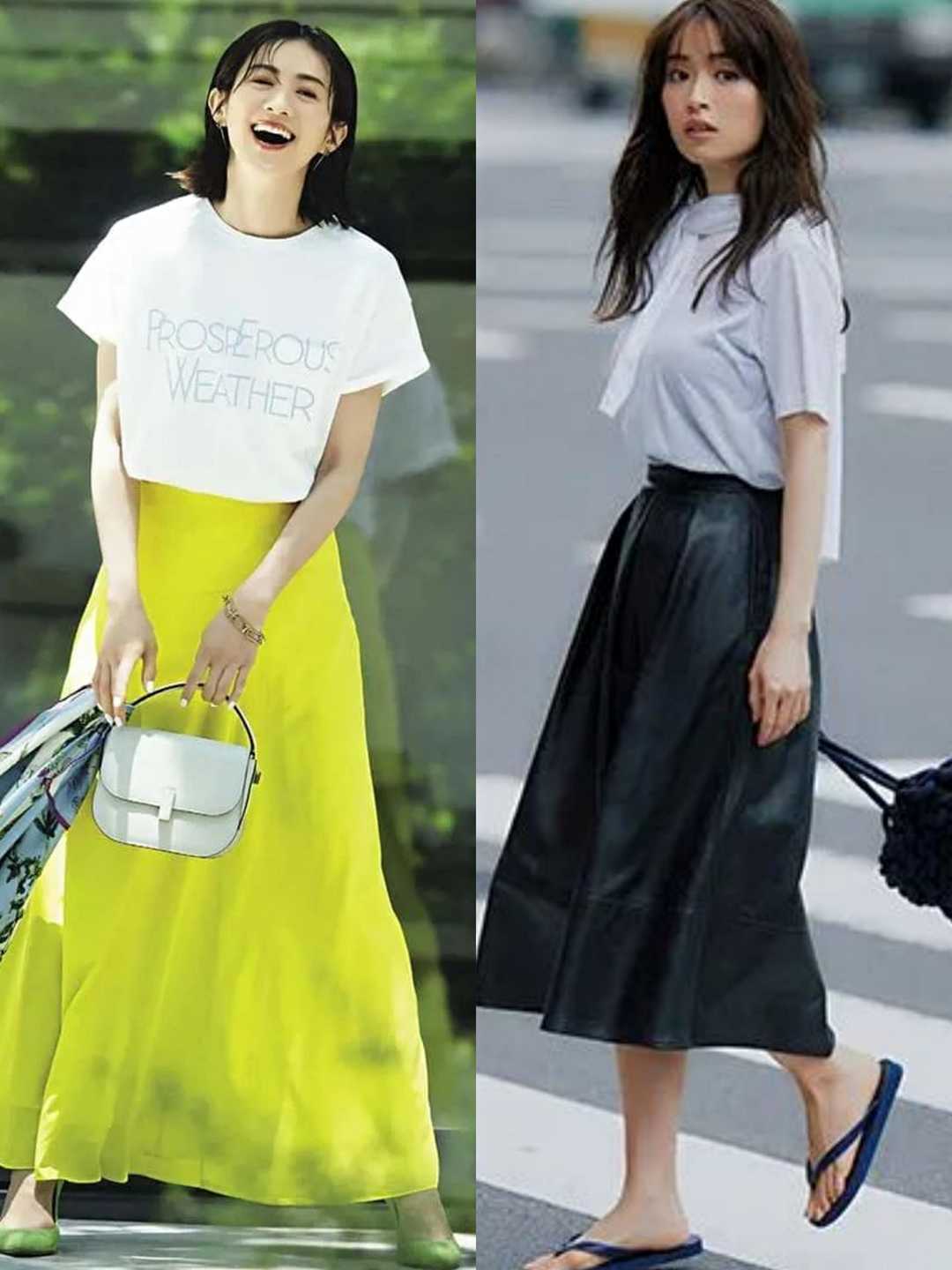 T-shirts are indeed very common, but their styles are very changeable , seemingly ordinary T-shirts can also be used to create various fashionable outfits. The combination of these skirts and T-shirts is very suitable for summer, full of romance and full of femininity!