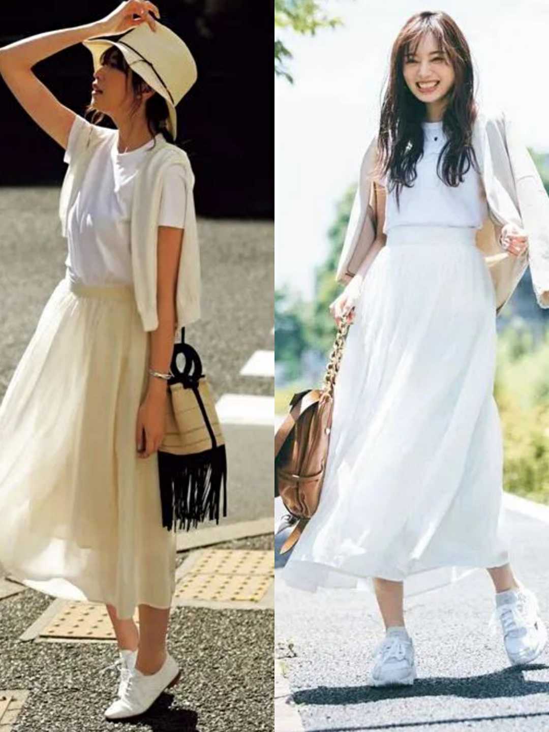 There are so many popular skirts in summer, and everyone will be confused when matching them. Let’s buy yourself a small white skirt first. It is very refreshing and attractive, and it can also add color when paired with a white T-shirt. It looks very coordinated. This combination of white T-shirt and white skirt can be said to be very suitable for summer.