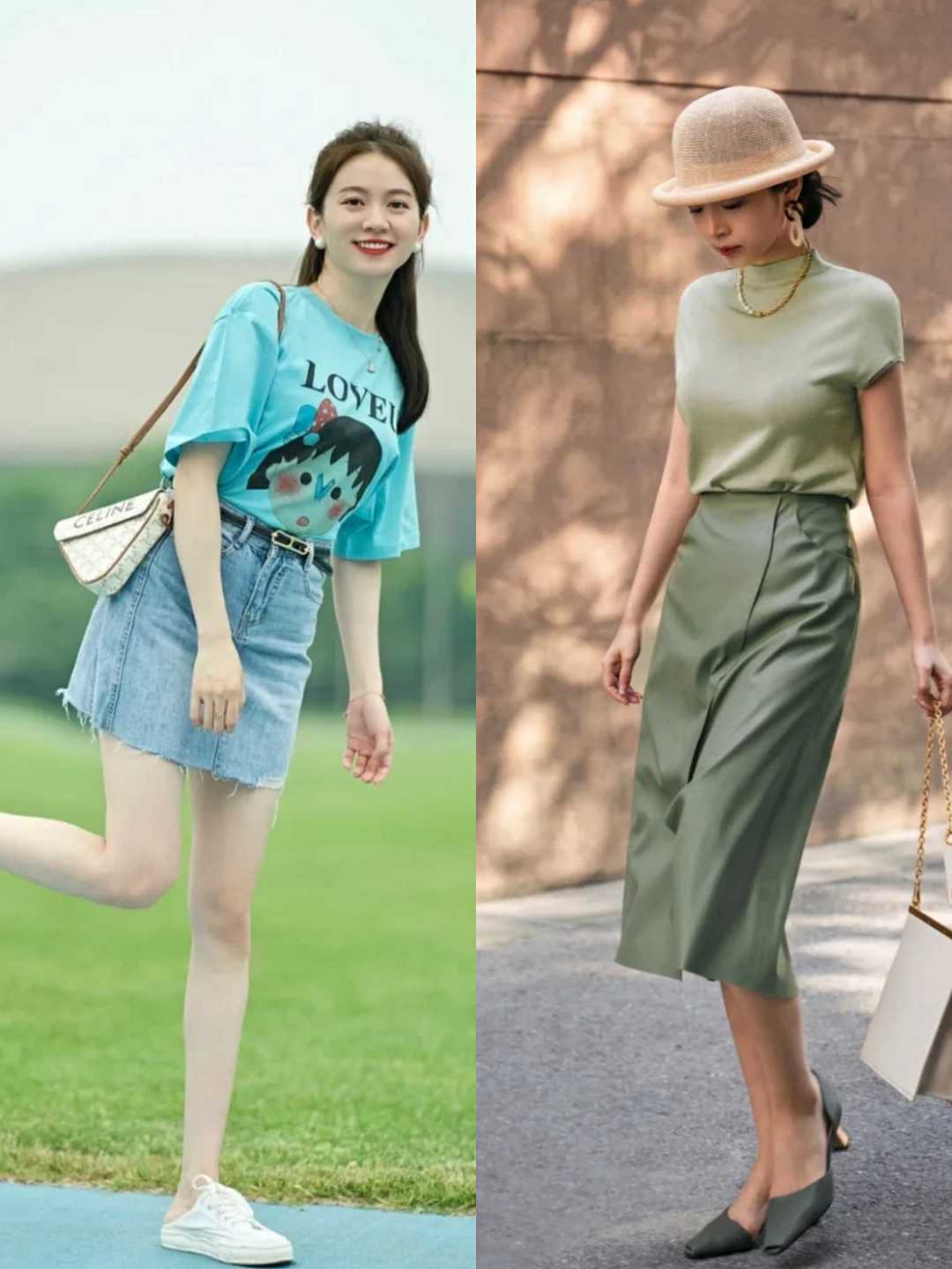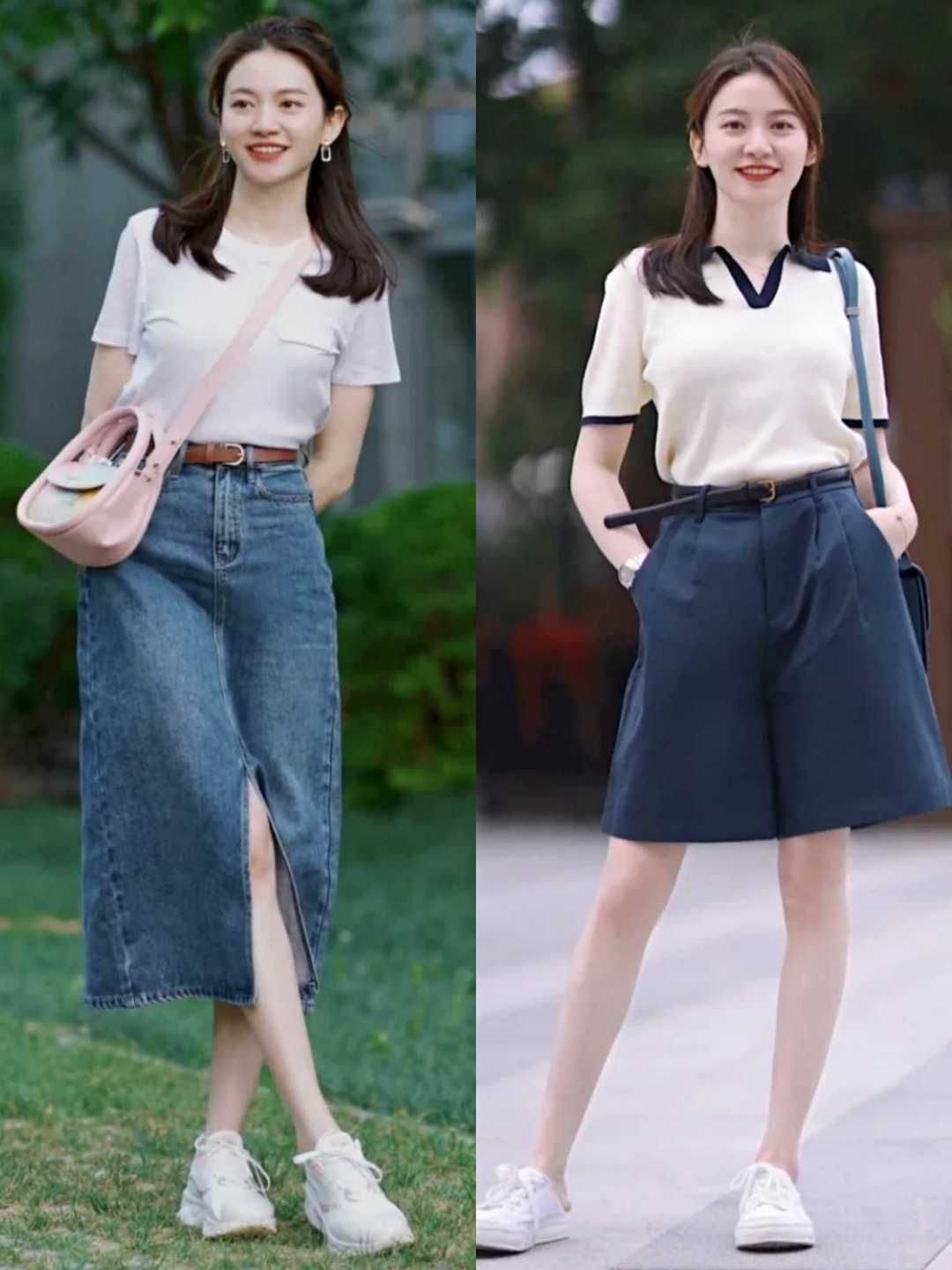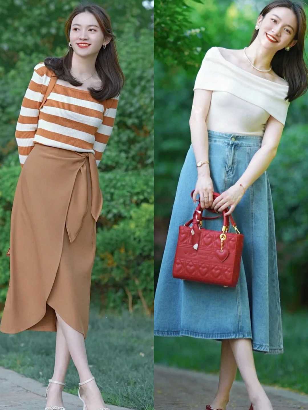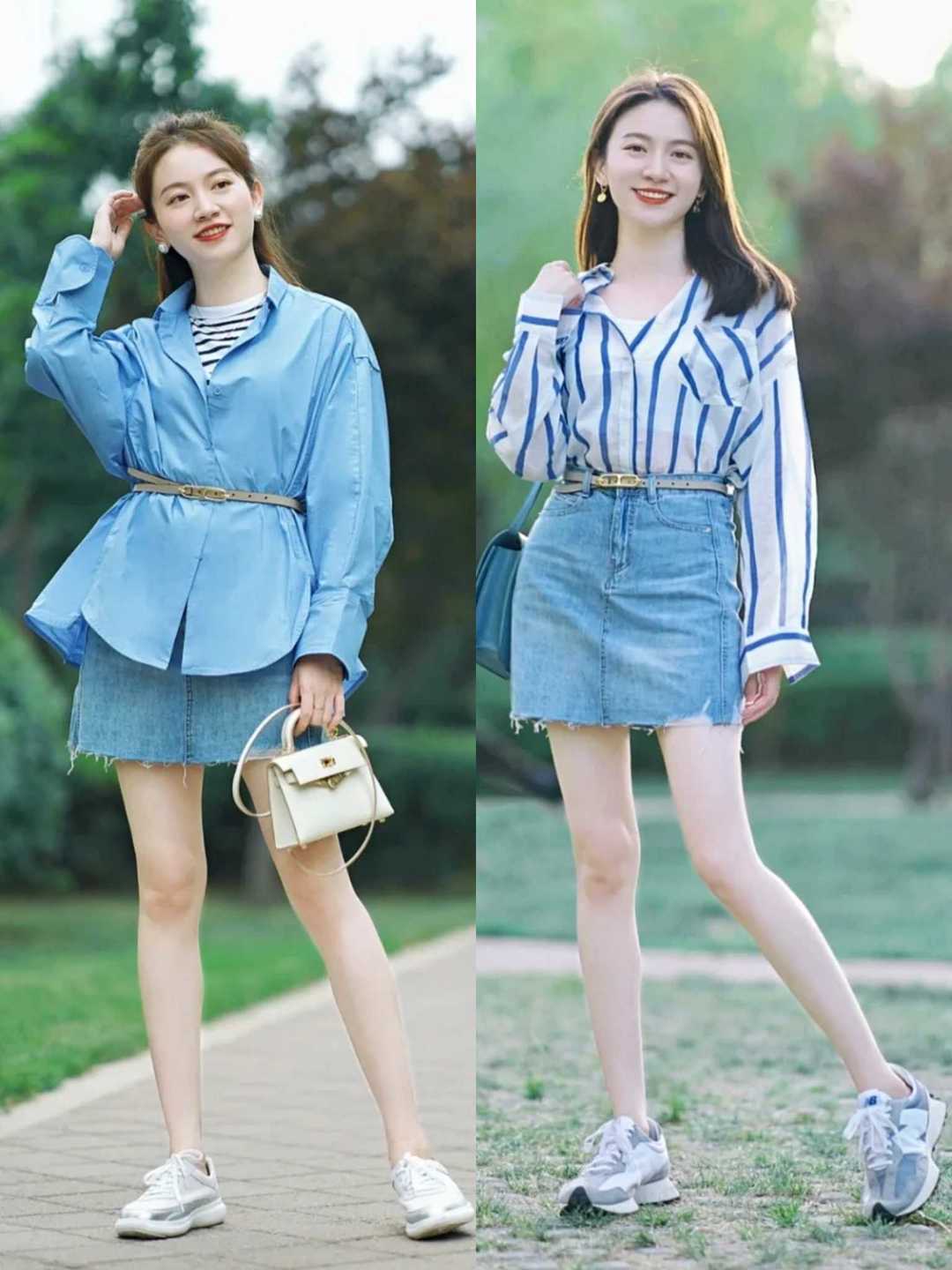 Whether you are wearing a shirt or a T-shirt, you can directly match it with a skirt. This kind of matching is quite elegant, and the skirts that these ladies match themselves with are basically like this An A-shaped version. This kind of skirt that is tight at the top and wide at the bottom covers up the problem of hip width and makes you look super slim!