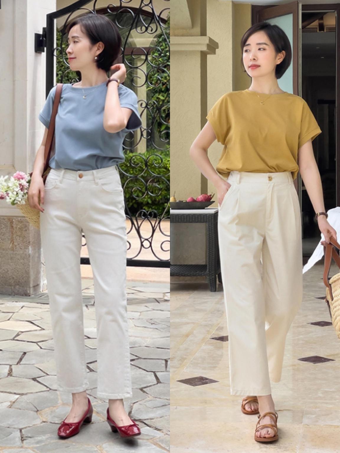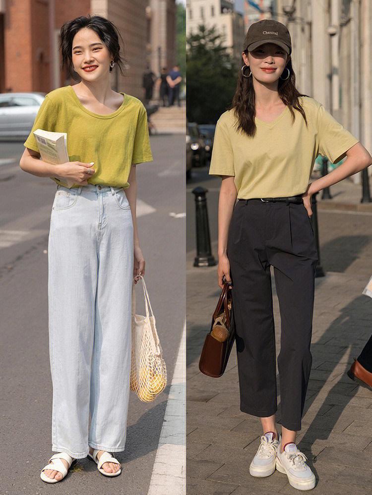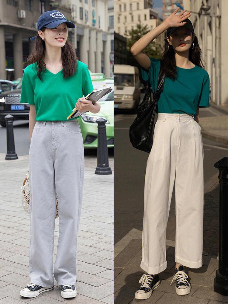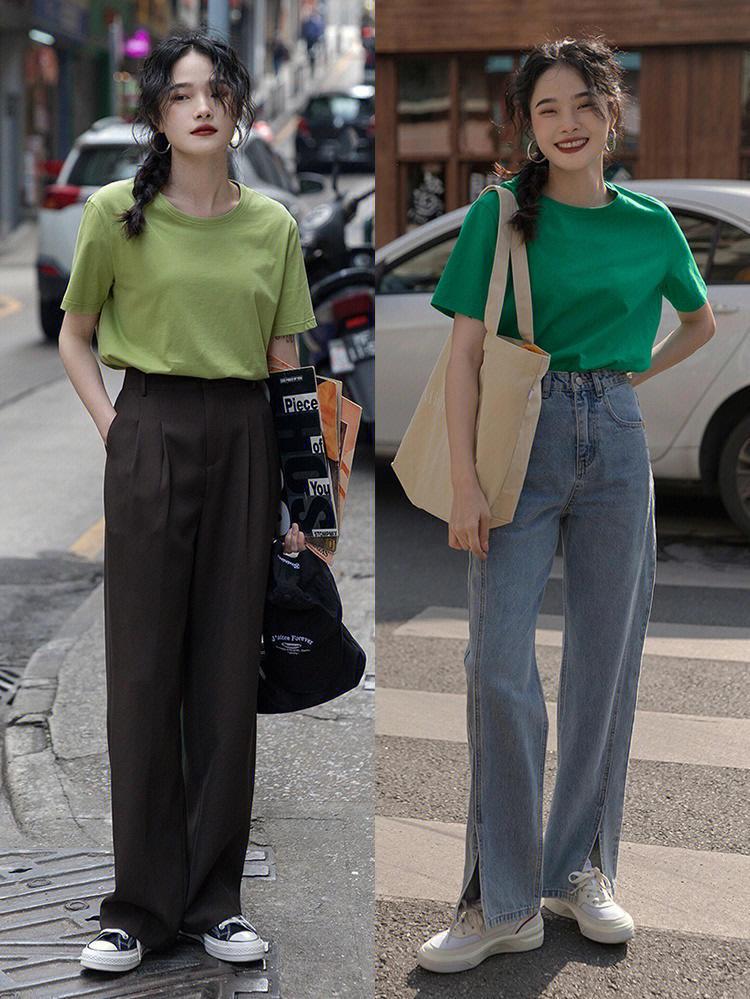 I also recommend that you try various contrasting colors in summer. When you choose a T-shirt, you can pair it with wide-leg pants of different colors, or you can Choose a variety of dark pants, pair them with bright-colored T-shirts, and contrast the colors of tops and bottoms to make your outfit more beautiful.