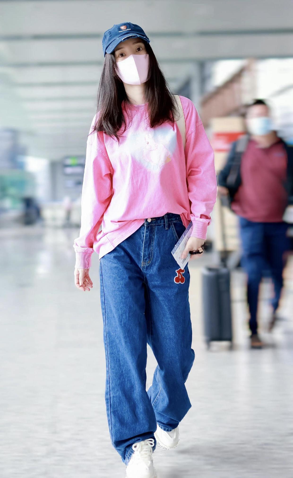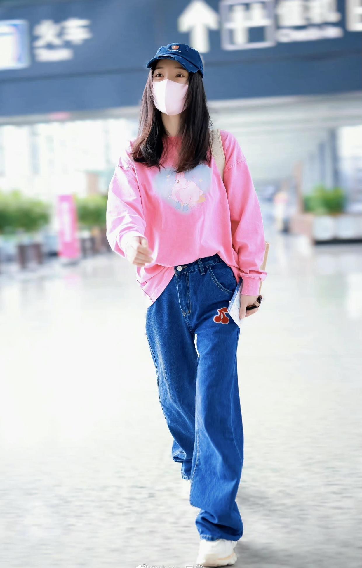 A very popular word now is called Girly, many girls want to dress themselves younger and more fashionable, so these girly outfits also make many people feel excited. For example, Liu Yan has been in the industry for so many years, but now she is living more and more The younger she gets, the better her mentality becomes. This time Liu Yan put on a pink T-shirt and wide-leg jeans. She still looked quite fashionable, and it was impossible to guess her actual age.