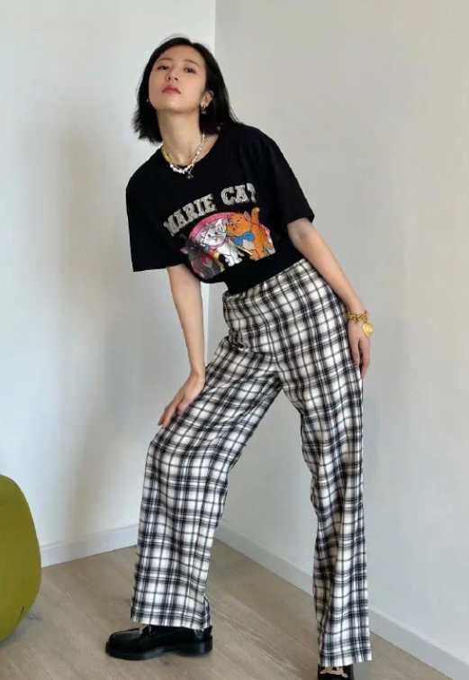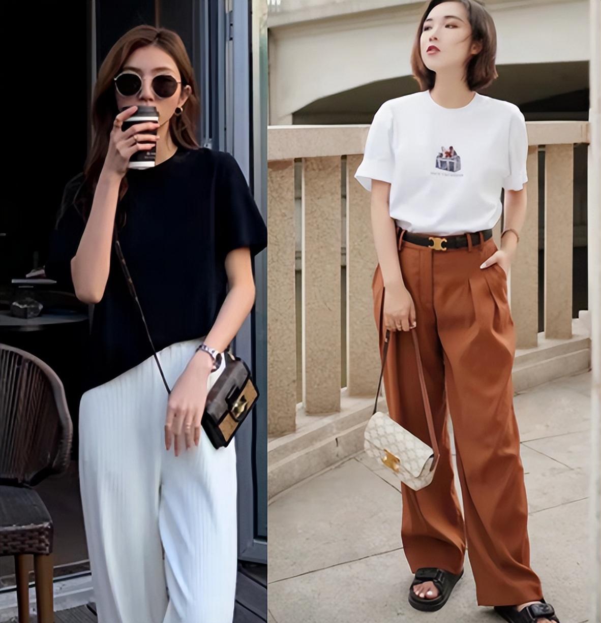 Because when we choose a lazy T-shirt, we choose a fitted version, so it can be worn with high-waisted black pants or jeans. To create a tight-fitting look and enhance the waist line, even girls with apple-shaped or pear-shaped figures can wear it this way.