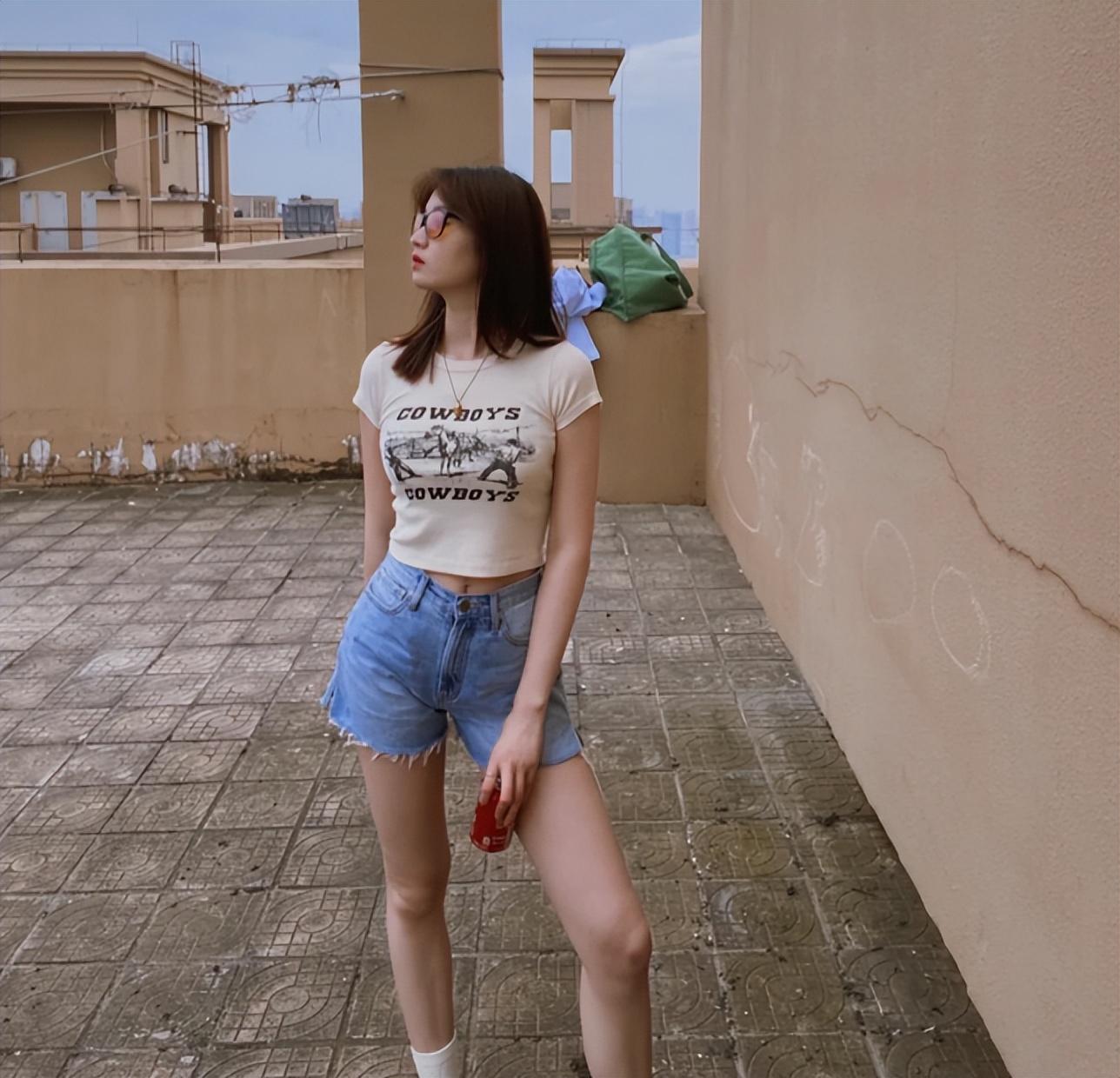 If you are a small girl and feel that the pants on the market are too long, you can also wear a lazy T-shirt with shorts, which can not only highlight the length of the legs, but also highlight the waistline. However, although this way of wearing can highlight your figure, it is not recommended for girls with bad leg shapes.