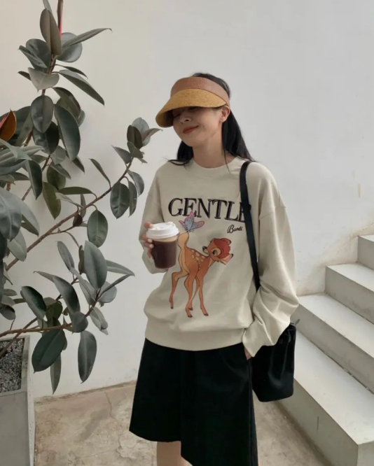 A sweatshirt is actually a very contrasting item. If worn well, it will look fashionable and reduce your age, but if worn poorly, it will look tacky and bulky. Especially for girls with big frames or fat girls, if they wear such loose and highly three-dimensional items, they will accidentally step into the minefield of sweatshirts.